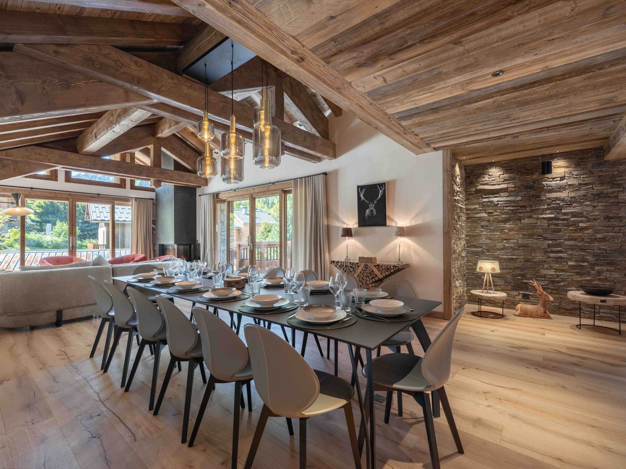 Spanning an impressive 450 sq.m, Le Grand Blanc comfortably hosts up to 14 guests. Its expansive terrace is fully furnished for open-air dining, making it the perfect place to share a meal while enjoying the jacuzzi and taking in the surrounding alpine scenery. Inside, a fully equipped kitchen awaits cooking enthusiasts, while the spacious living area: with plush sofas and a central fireplace, sets the stage for cozy evenings after skiing.