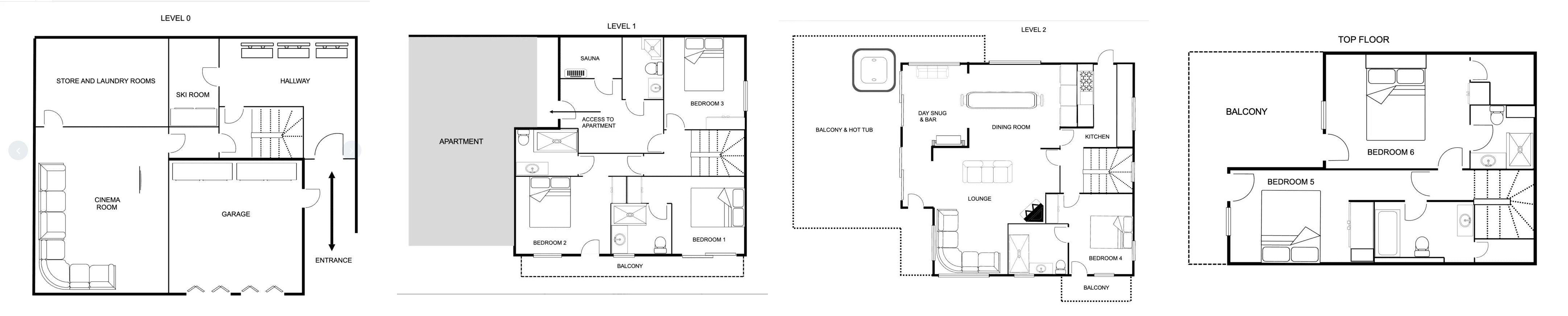 After a day on the slopes, indulge in Indiana Lodge’s private wellness facilities. Ease tired muscles with a soothing soak in the hot tub or unwind in the sauna on the first floor. For evening entertainment, head to the cosy cinema room on the ground floor — perfect for family movie nights or catching your favourite blockbuster.