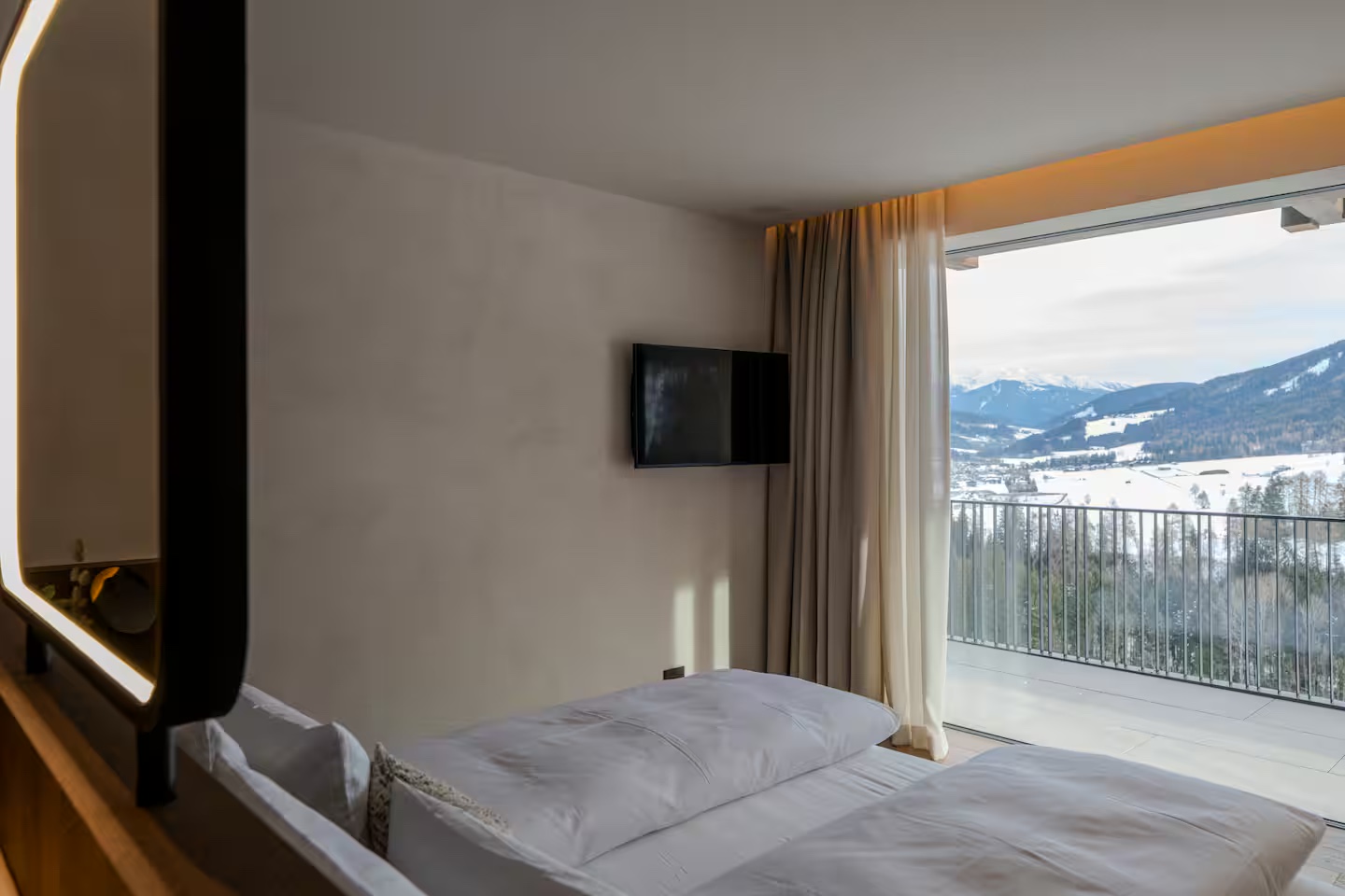 Perched above Olang at 1,250 meters and surrounded by meadows and forests, the chalet offers panoramic views and an ideal balance between peaceful seclusion and direct access to outdoor adventure. It is the perfect setting for an undisturbed nature getaway, as well as a base for unforgettable ski and hiking holidays.
