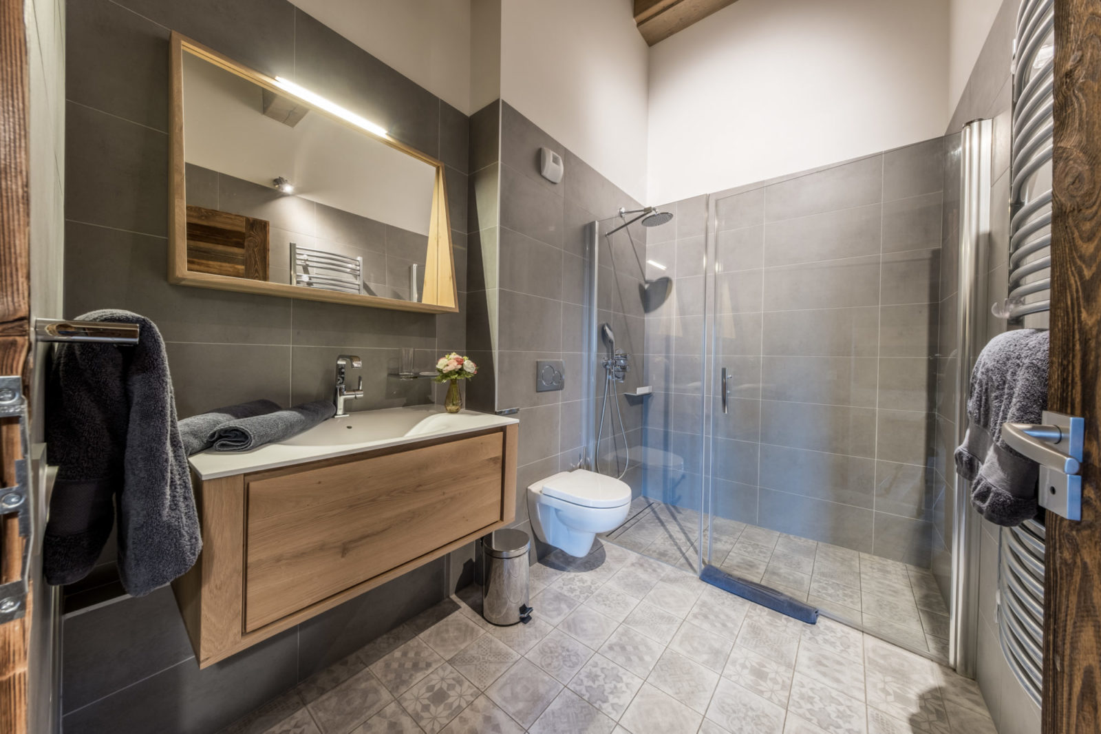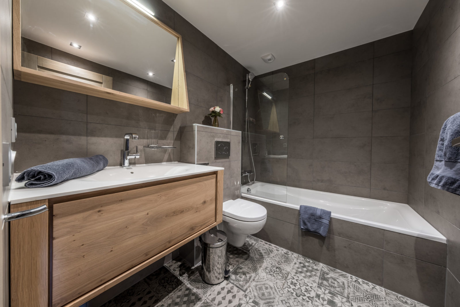 Spanning 220 m² on a single level, the Penthouse Keystone features four beautifully appointed en-suite bedrooms, each with its own private bathroom or shower room, ensuring complete privacy and comfort for every guest. The spacious open-plan living area includes a cozy lounge, a warm dining space, and a fully equipped kitchen—perfect for sharing meals and moments together after a day on the slopes.