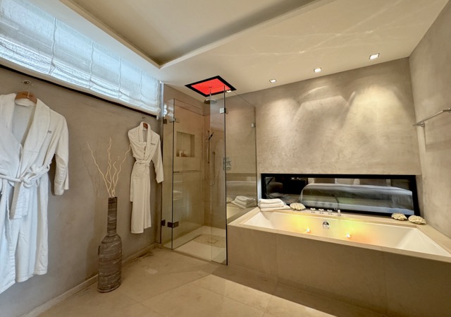 A highlight of the suite is its exclusive private spa, which includes a sauna and steam shower. Thanks to the direct connection to the 5-star deluxe hotel Weisses Rössl, guests may also enjoy the hotel’s large, modern pool and spa area between December 12 and March 31, open daily from 8:00 a.m. to 8:00 p.m. Massages and other treatments are available for an additional fee.