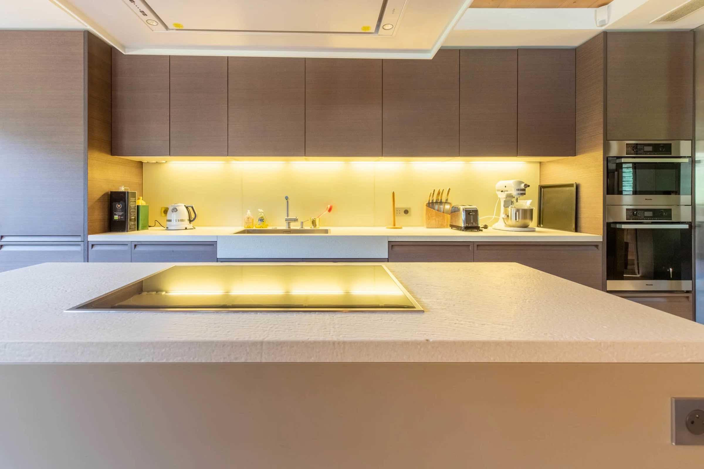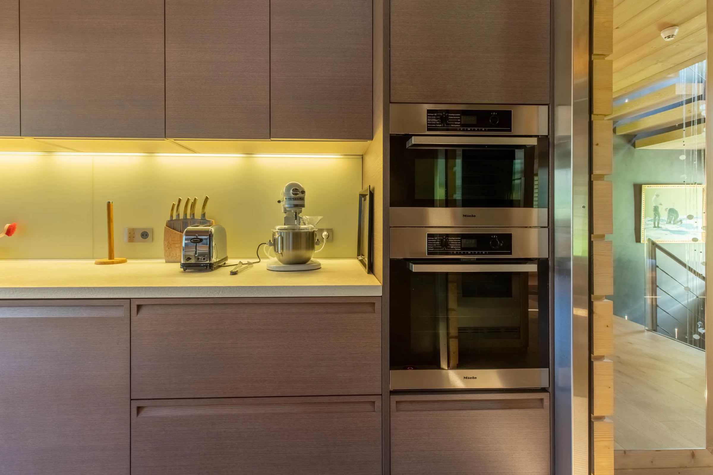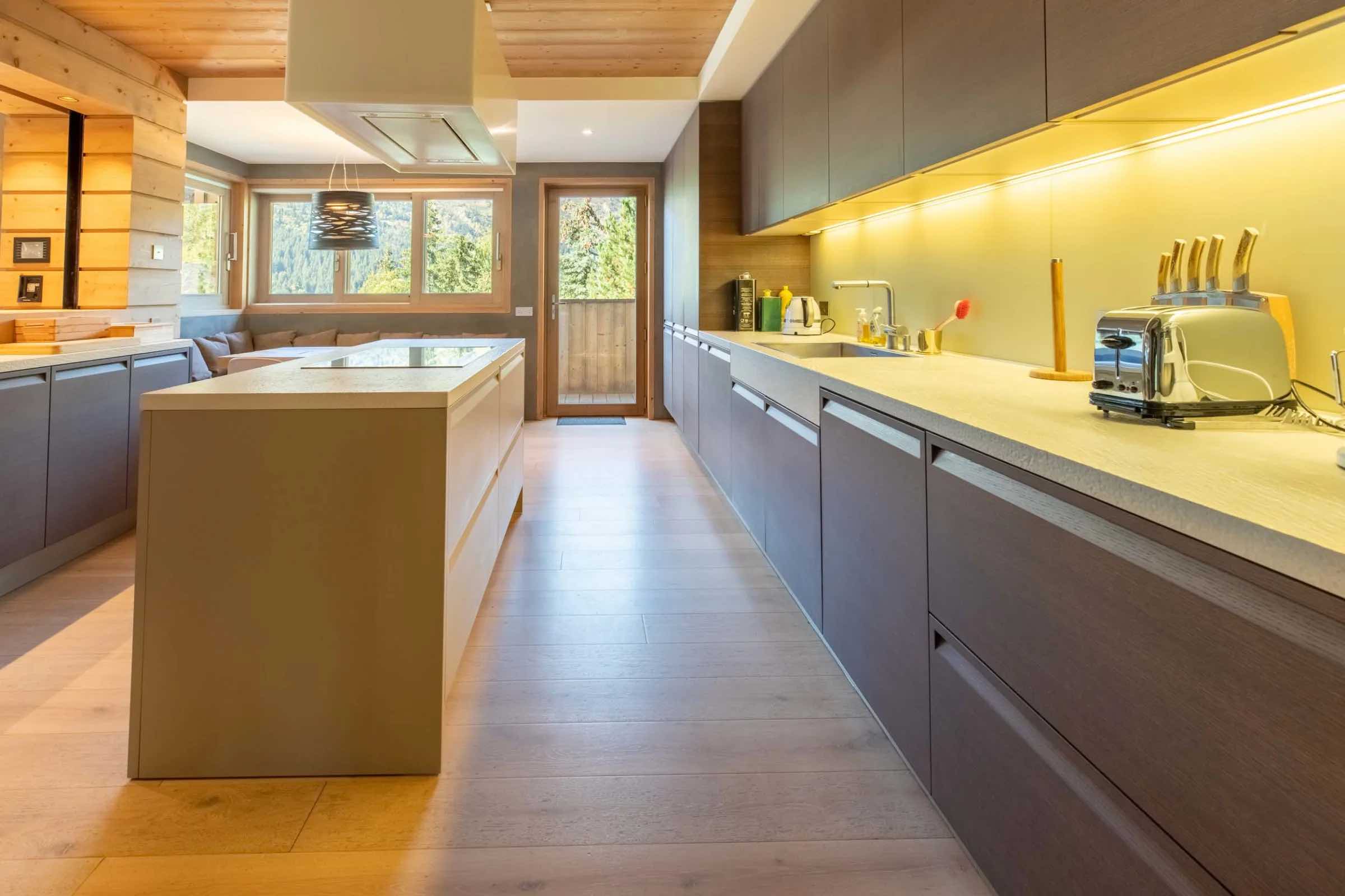 For guests seeking additional privacy, the independent ground-floor studio offers a fully equipped kitchenette, a sofa bed, and its own bathroom. Ideal for extended family members, a nanny, or visiting friends, it functions as a self-contained retreat within the chalet.