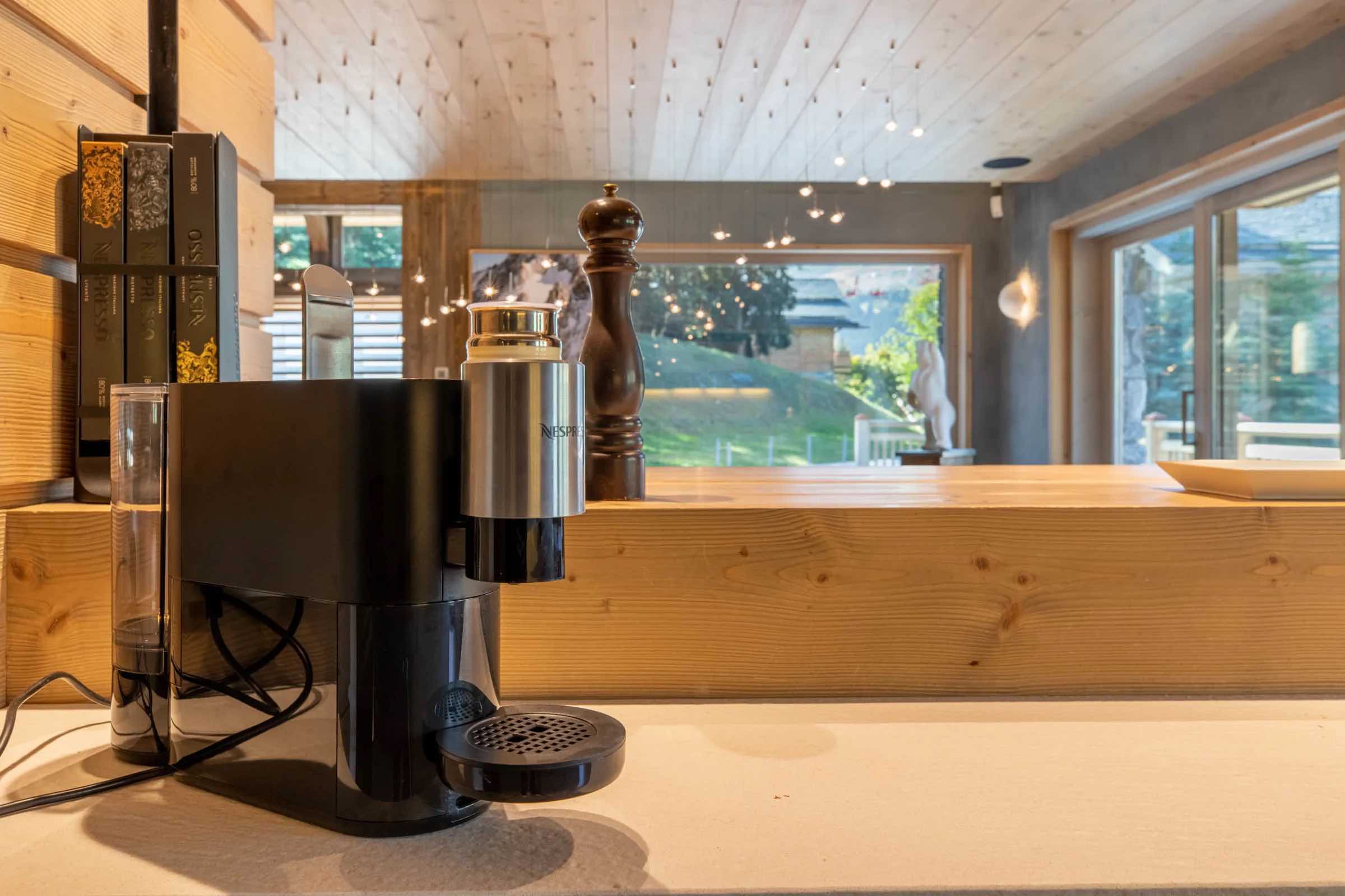 At the heart of Chalet Le Nolde lies an impressive living area centred around a striking glass fireplace. Double-height ceilings and expansive bay windows flood the space with natural light while framing uninterrupted mountain views, making it the perfect setting to relax with a book, share a glass of wine, or simply take in the surrounding silence.
