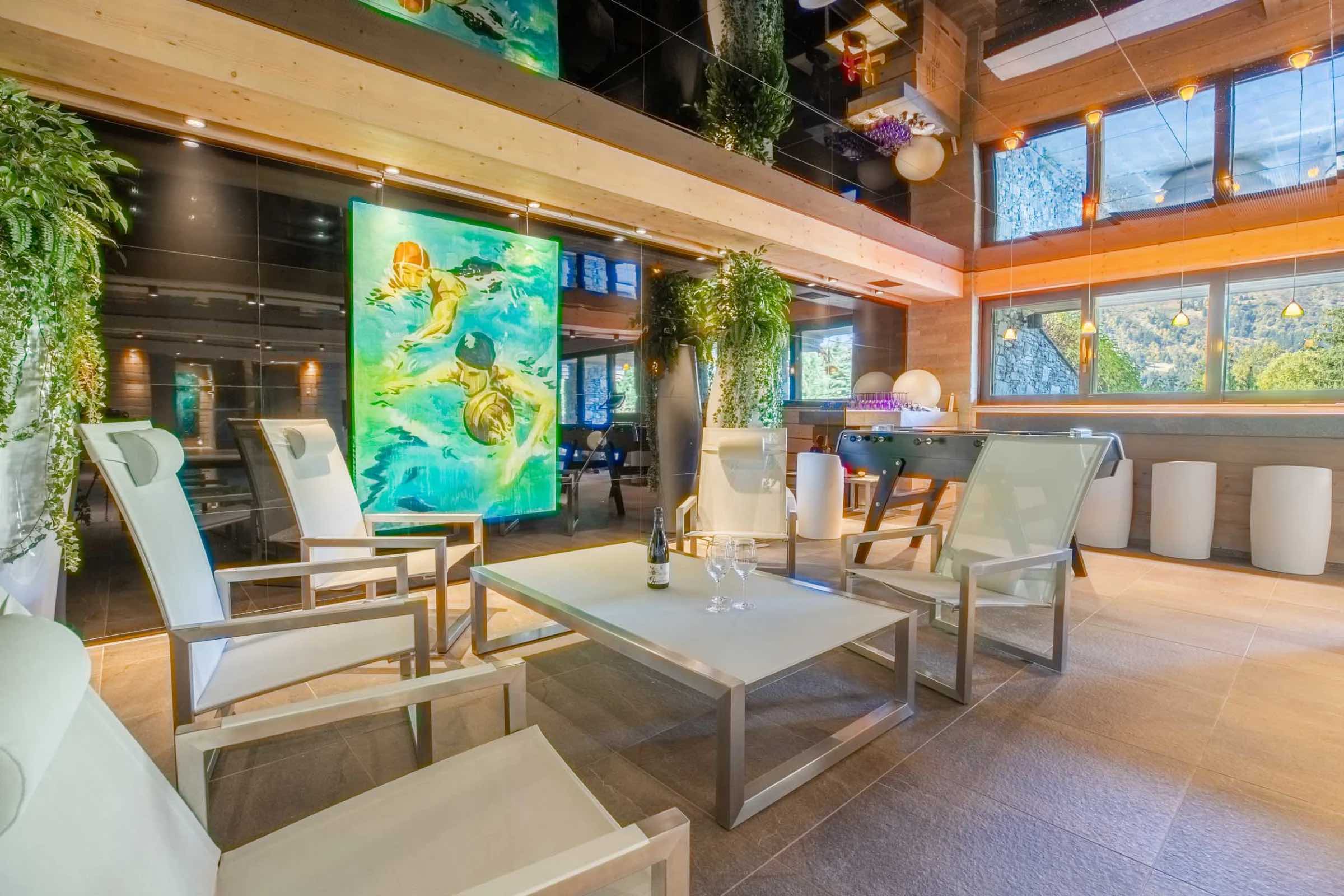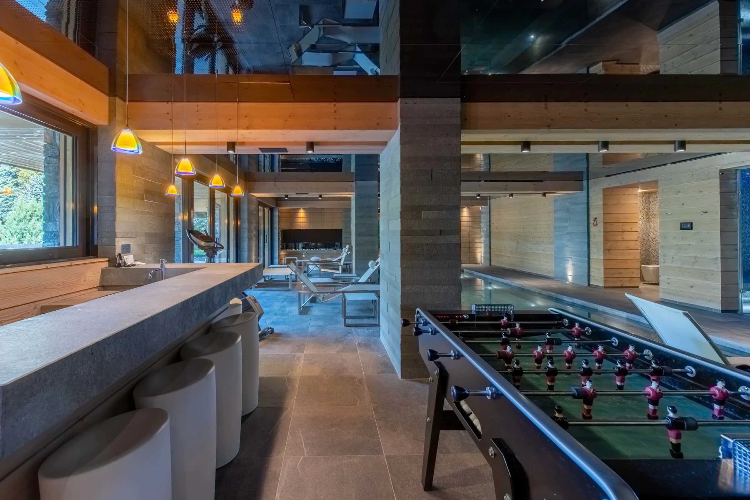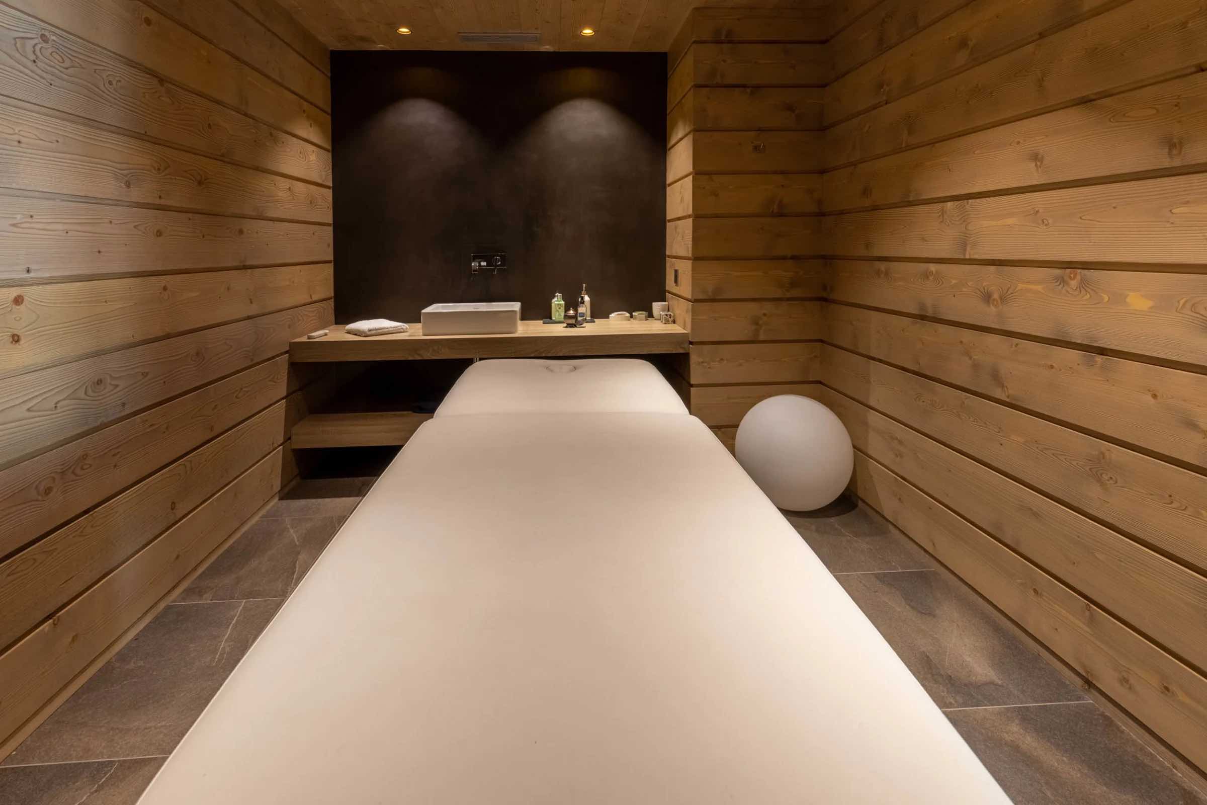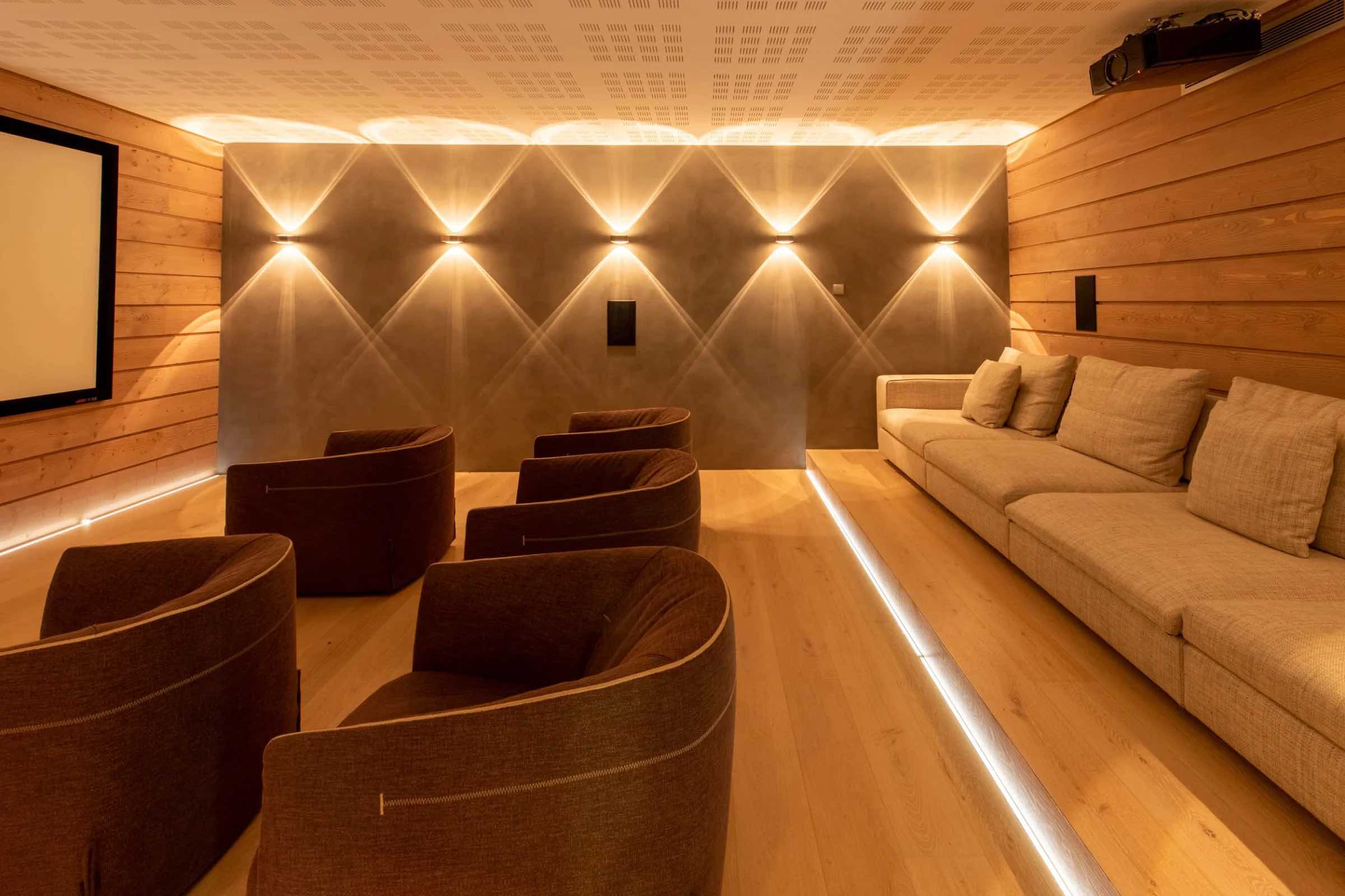After a day on the slopes, unwind in the heated indoor swimming pool or rejuvenate in the soothing steam of the traditional hammam, creating a daily ritual of relaxation and wellbeing. For moments of deeper indulgence or cosy evenings indoors, the chalet also features a tranquil massage room for in-house treatments and a plush private cinema, perfect for film nights with family and friends.