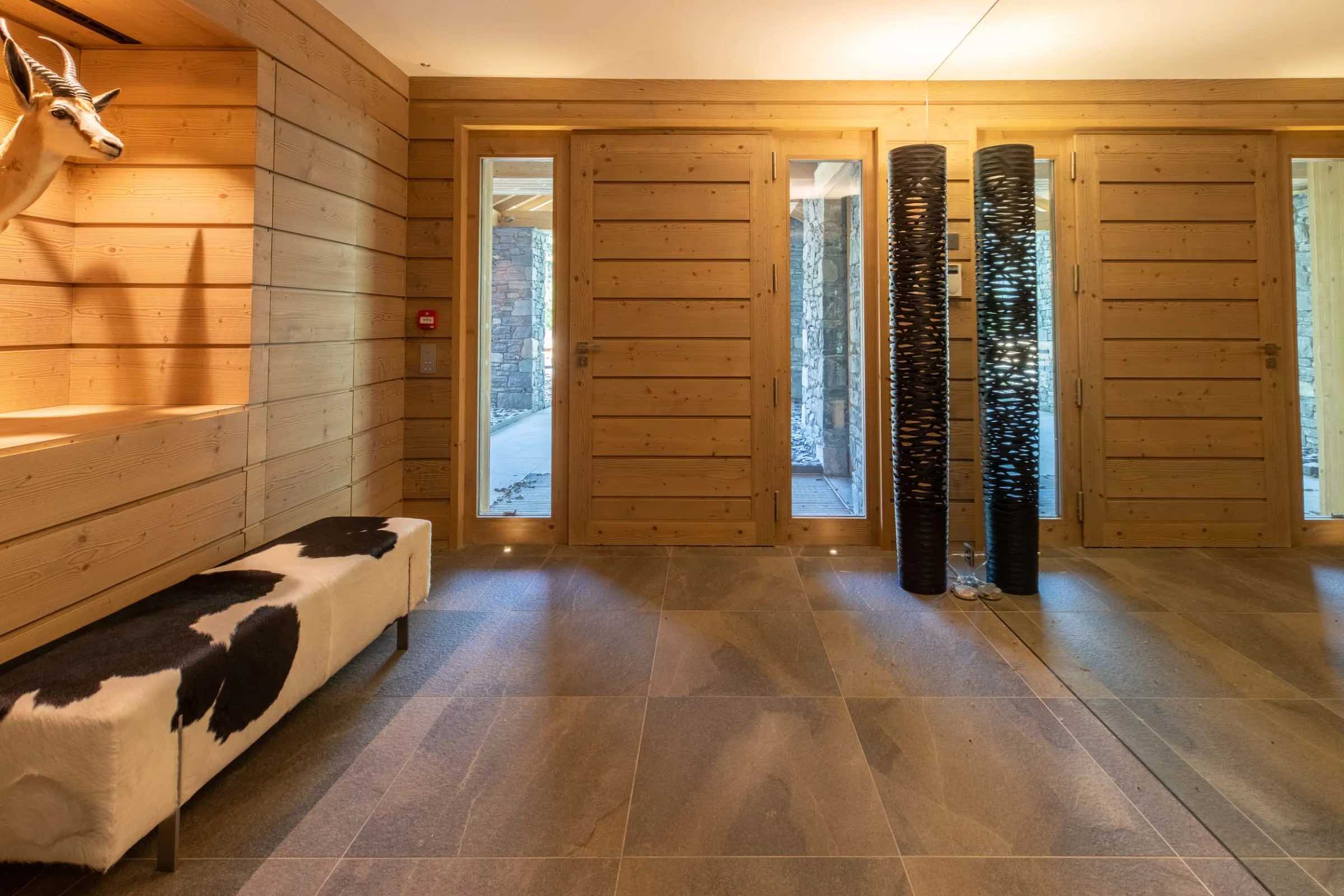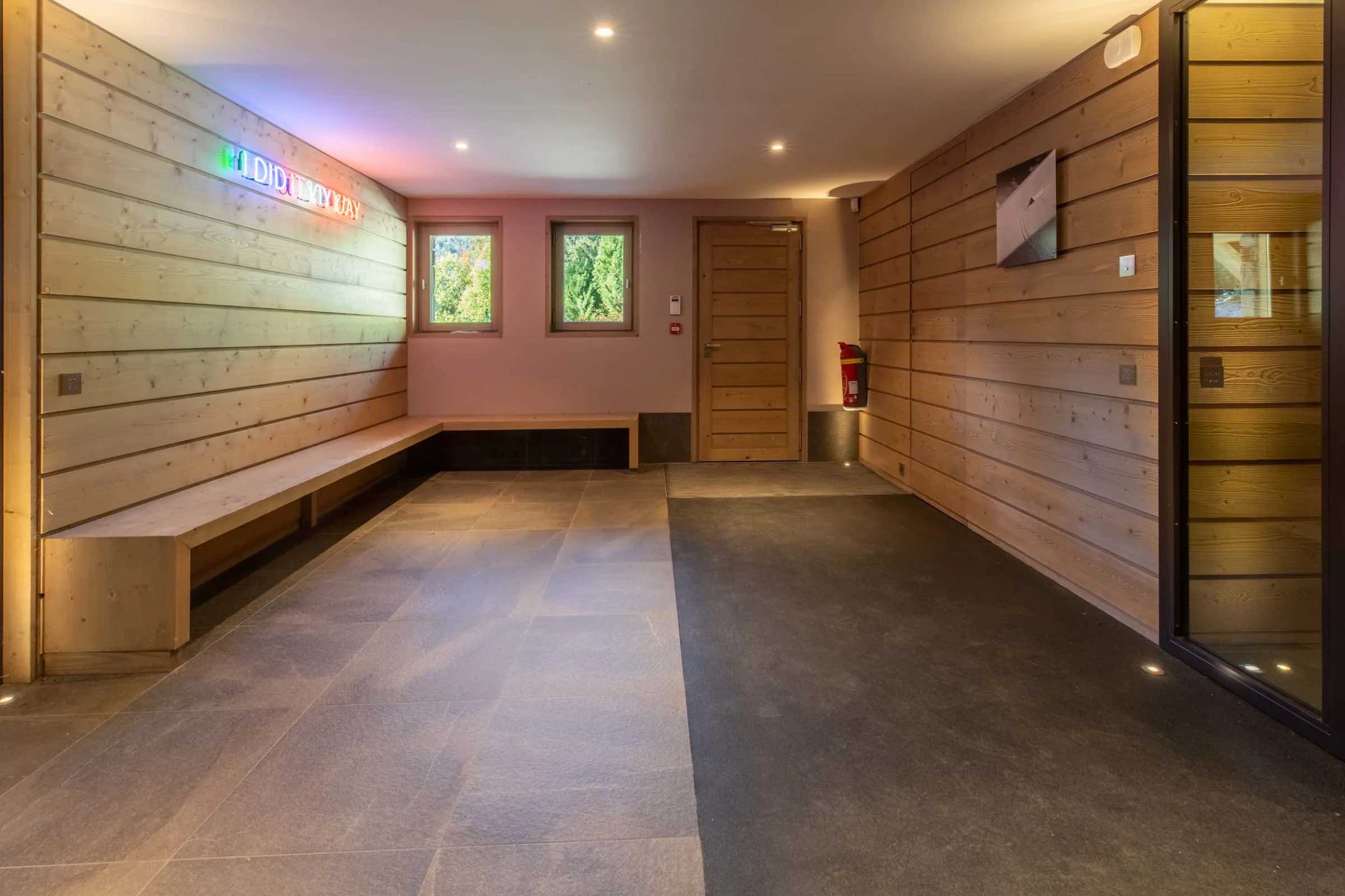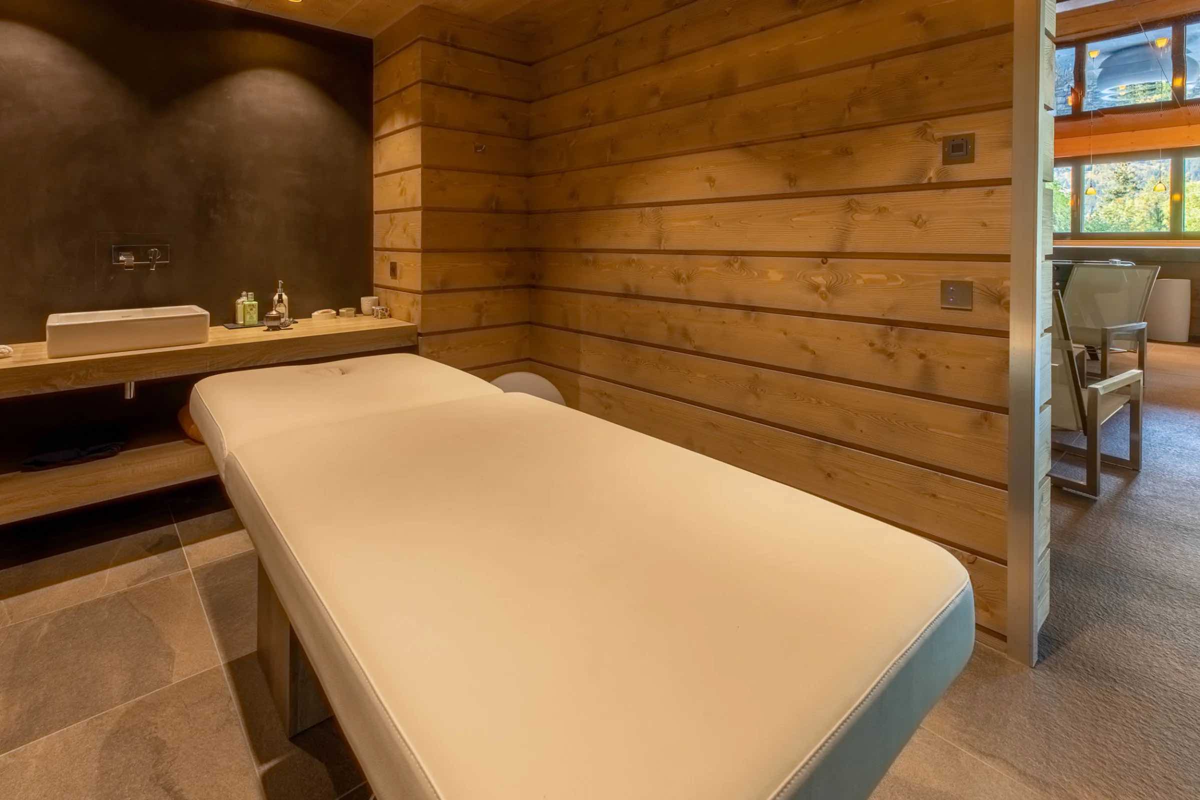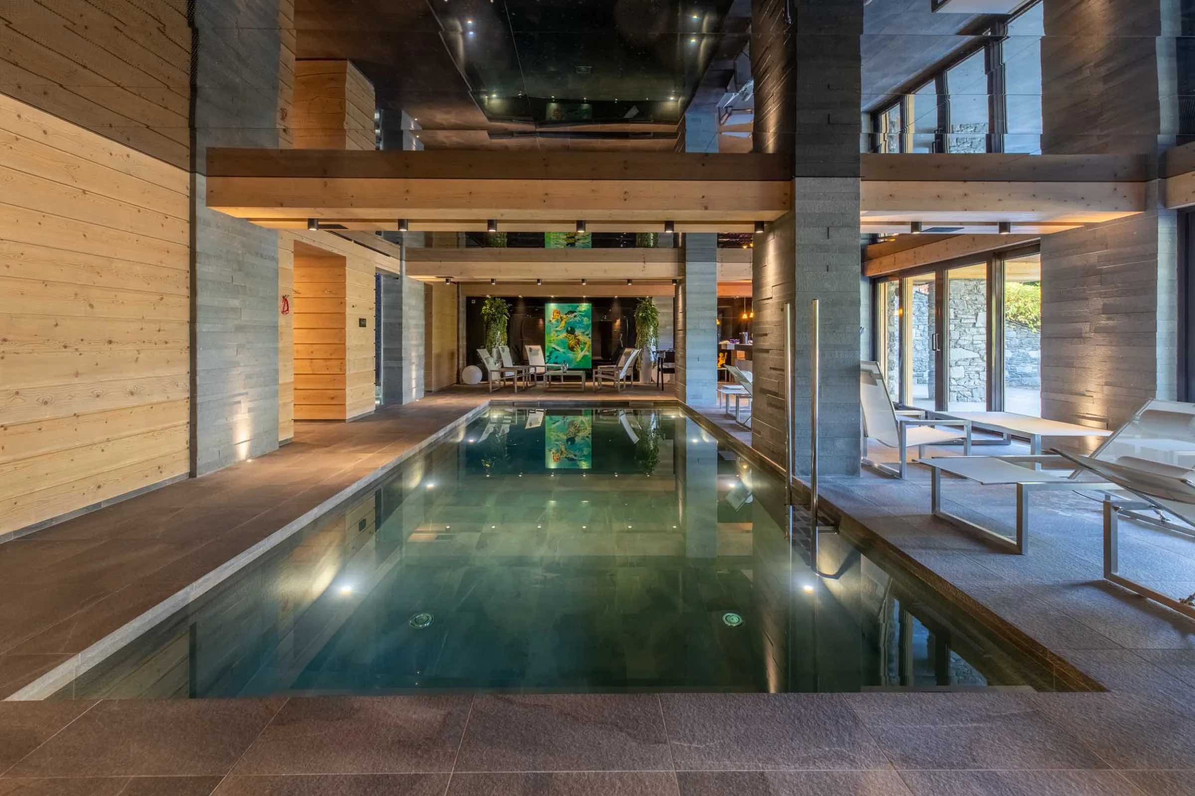 After a day on the slopes, unwind in the heated indoor swimming pool or rejuvenate in the soothing steam of the traditional hammam, creating a daily ritual of relaxation and wellbeing. For moments of deeper indulgence or cosy evenings indoors, the chalet also features a tranquil massage room for in-house treatments and a plush private cinema, perfect for film nights with family and friends.