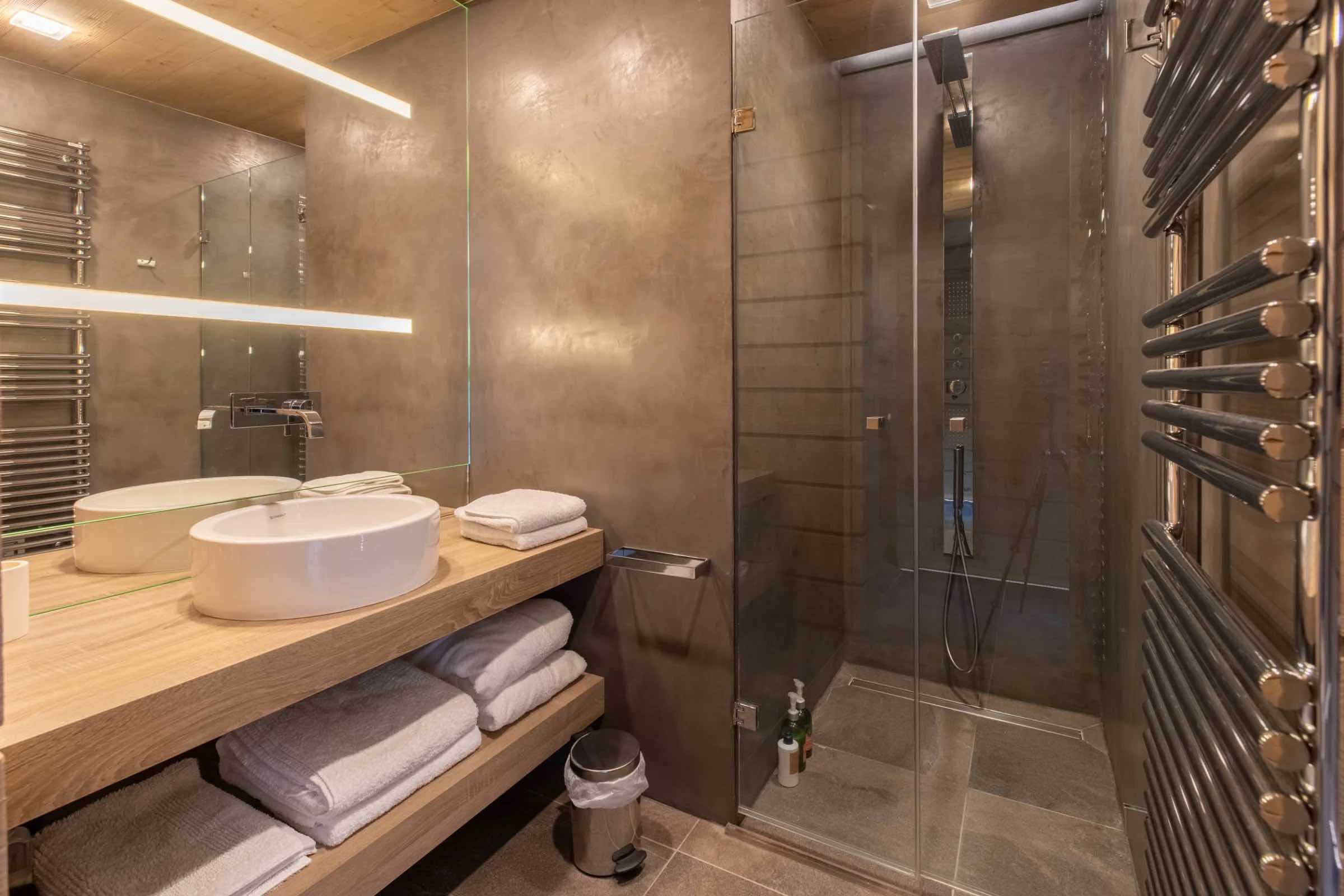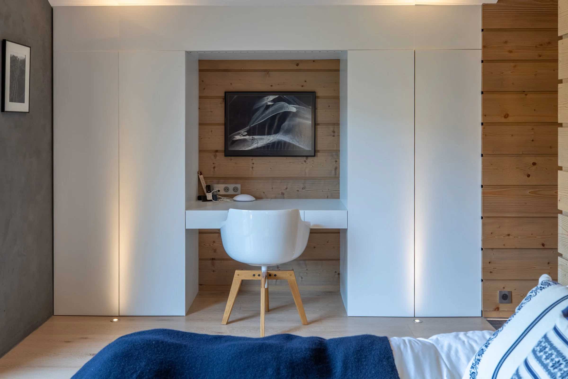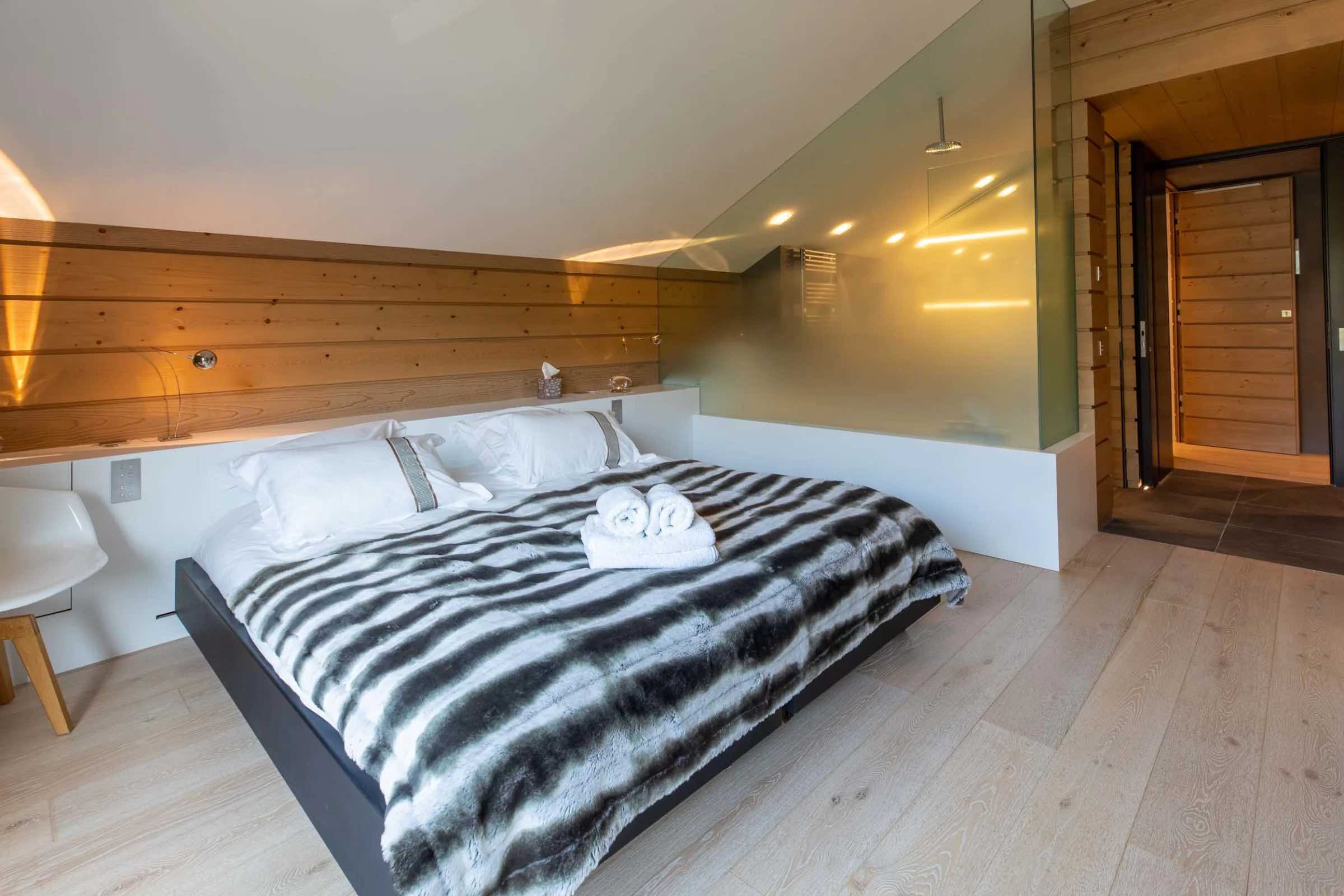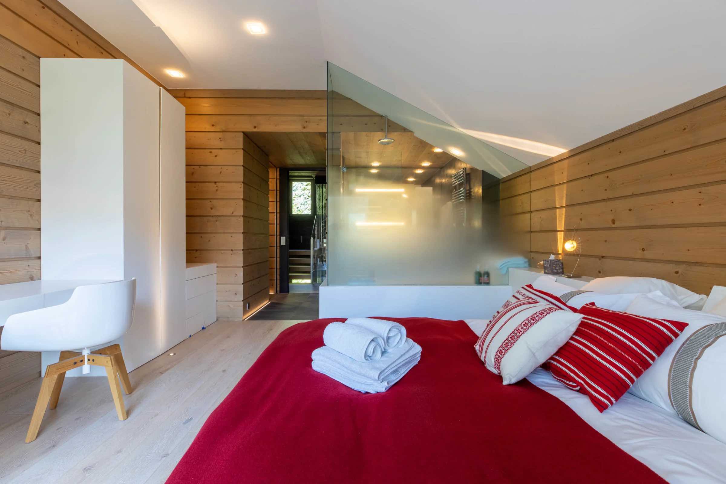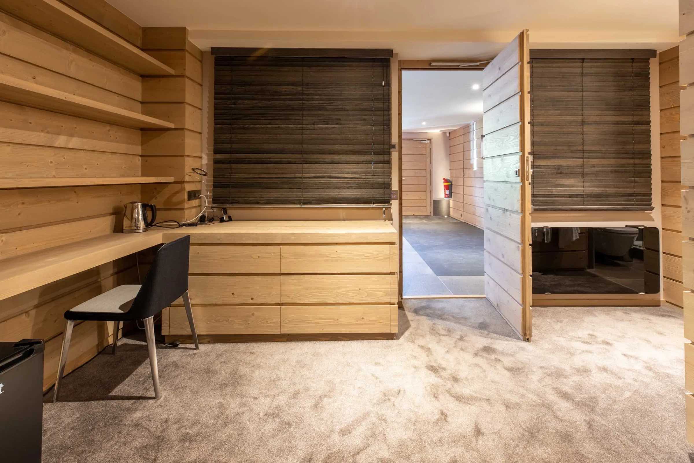 The chalet features four beautifully spacious bedrooms, each offering a king-size bed, an elegant en-suite bathroom, and a separate WC. Two bedrooms include indulgent bathtubs, while the remaining two are fitted with sleek, modern showers. Generous wardrobes, hanging space, and dedicated desks ensure both comfort and practicality throughout your stay.