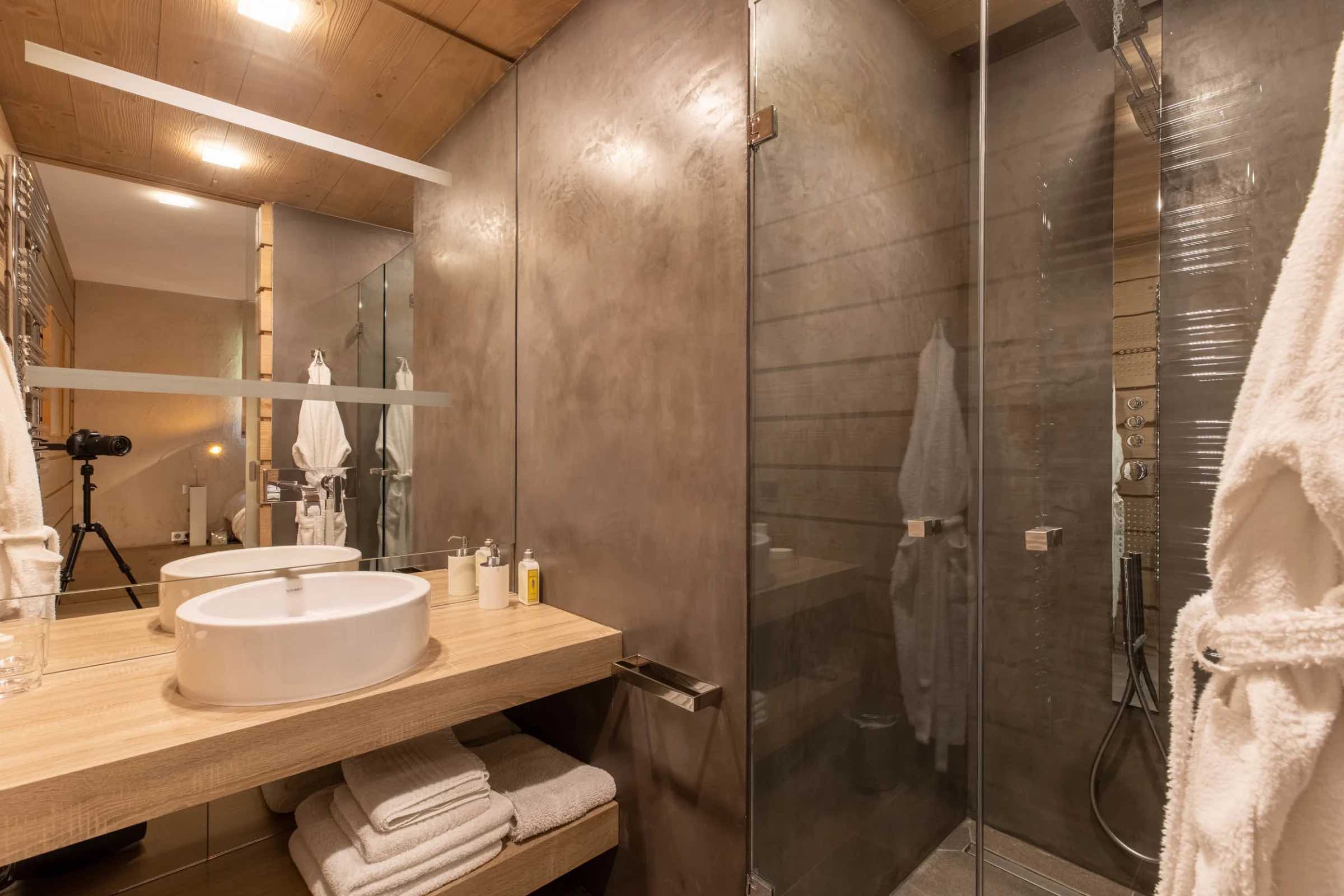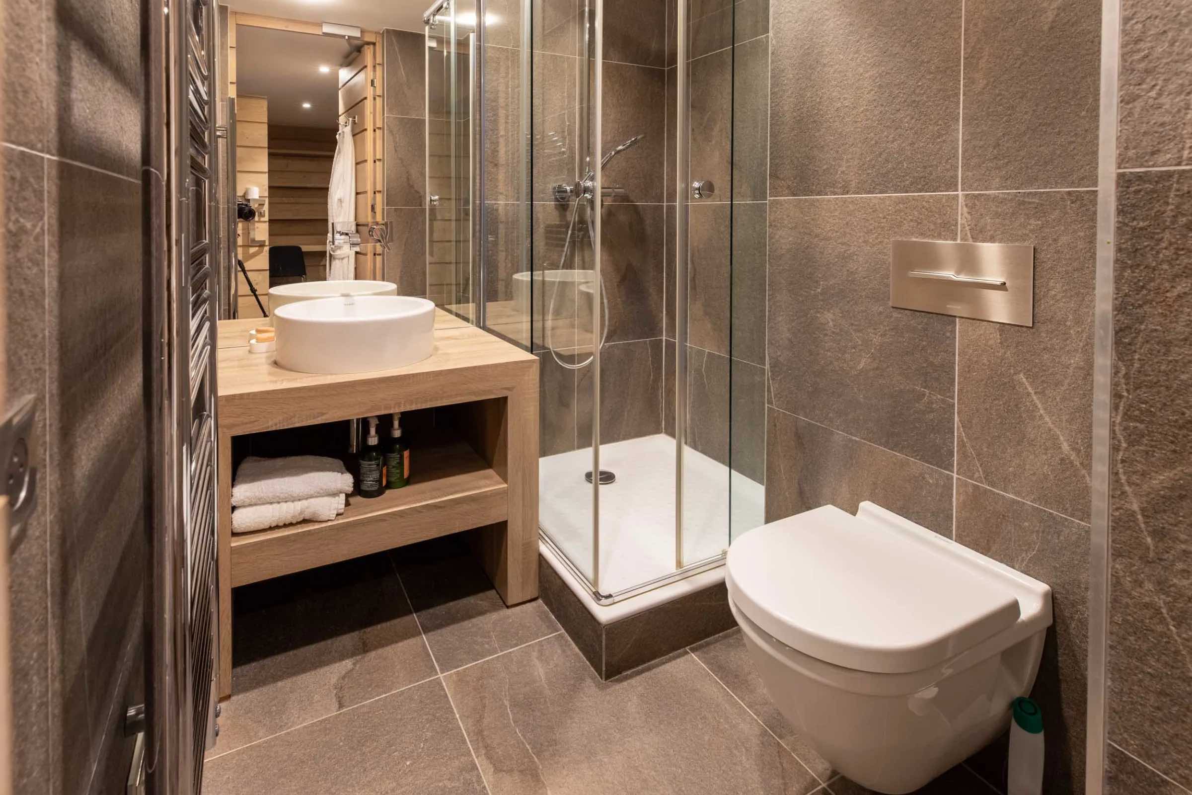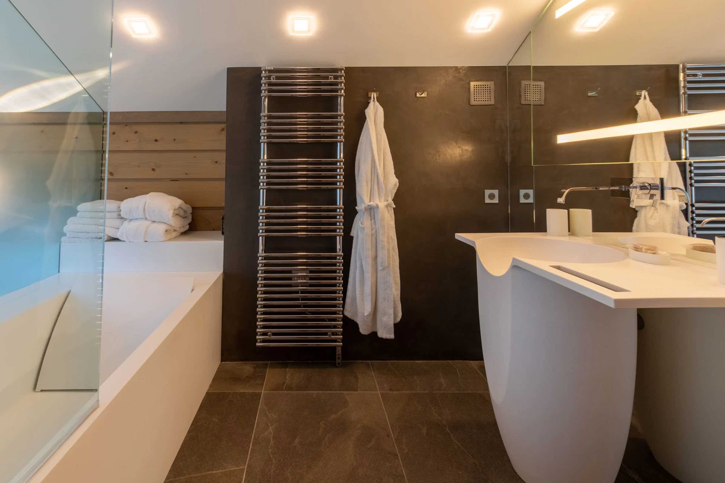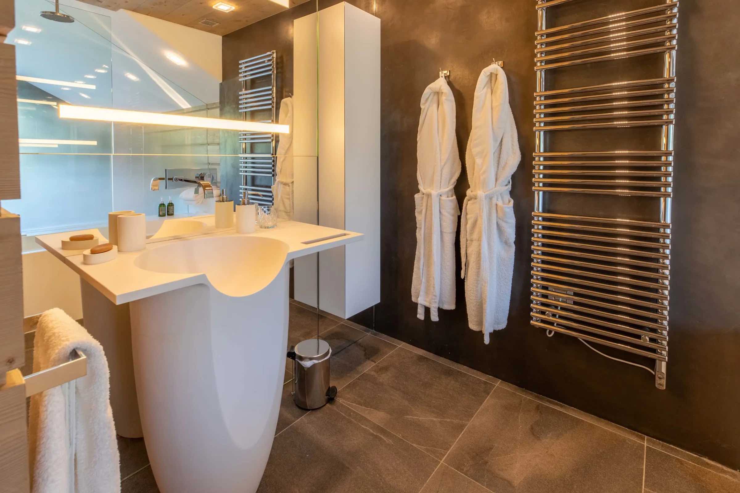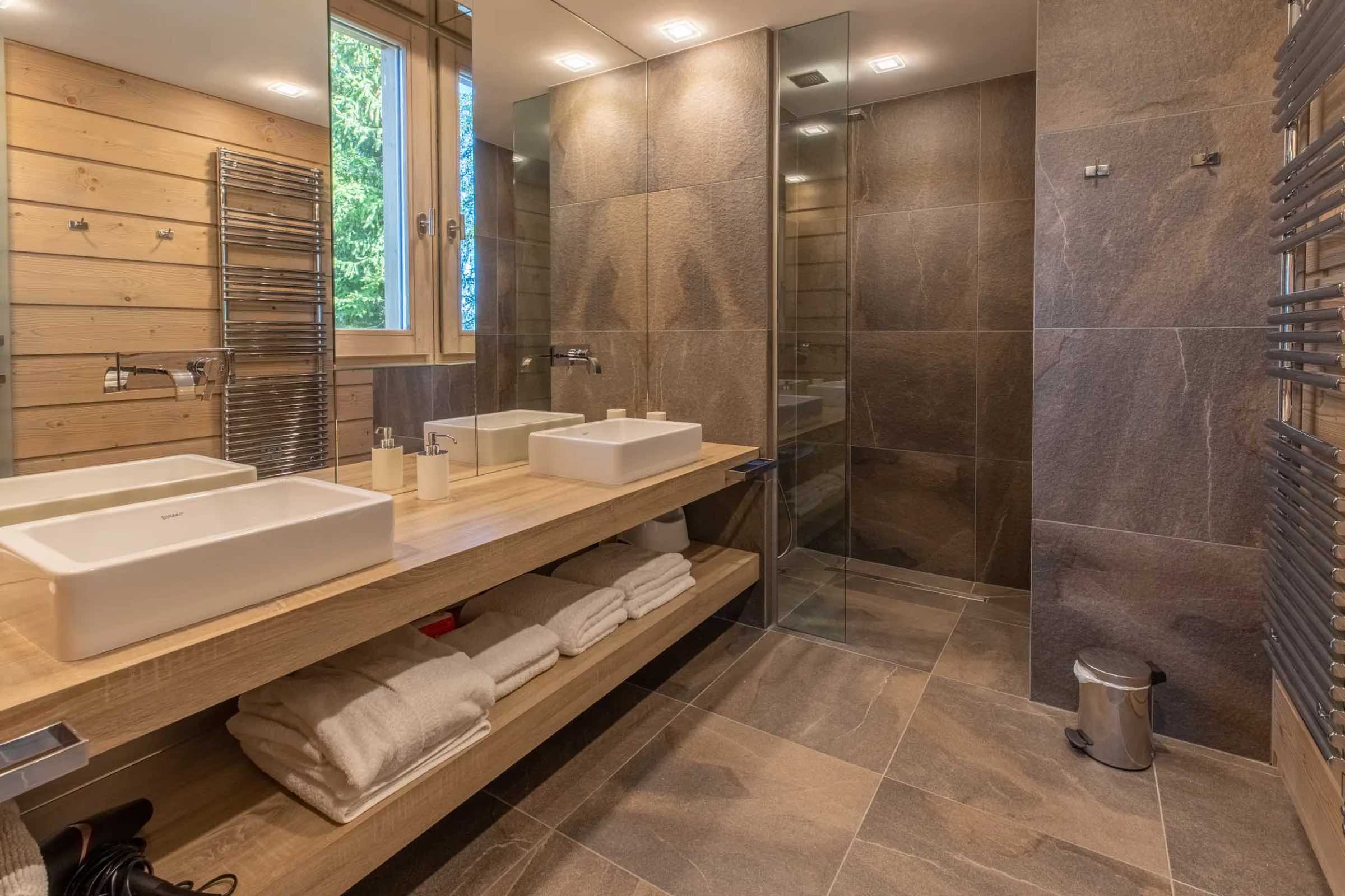 The chalet features four beautifully spacious bedrooms, each offering a king-size bed, an elegant en-suite bathroom, and a separate WC. Two bedrooms include indulgent bathtubs, while the remaining two are fitted with sleek, modern showers. Generous wardrobes, hanging space, and dedicated desks ensure both comfort and practicality throughout your stay.