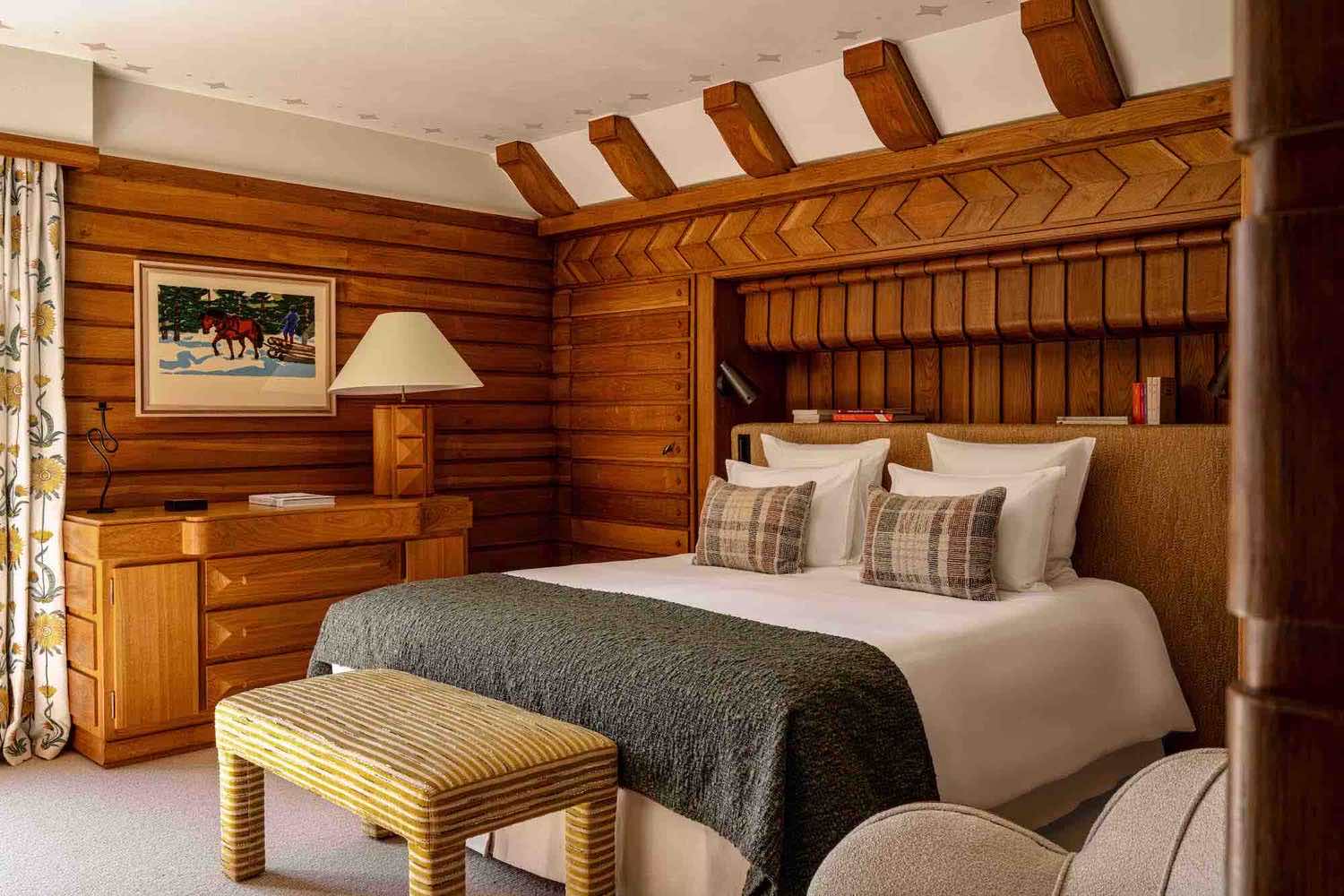 Spanning expansive interiors, the chalet offers beautifully appointed bedrooms, generous living spaces, and a seamless connection between indoor comfort and outdoor nature. Every detail has been carefully curated, from rich materials and bold architectural lines to bespoke furnishings and artistic touches, paying homage to its heritage while embracing contemporary living.