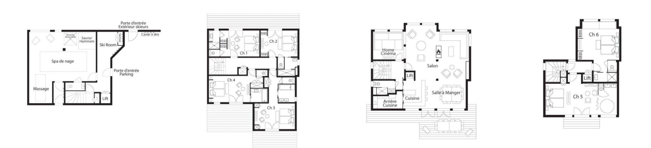 A dedicated wellness level elevates the experience, offering a swimming spa, jacuzzi, hammam, sauna, sensory shower and massage room, perfect for unwinding after skiing. Practical amenities such as a ski room, underfloor heating and covered parking ensure effortless comfort throughout your stay.