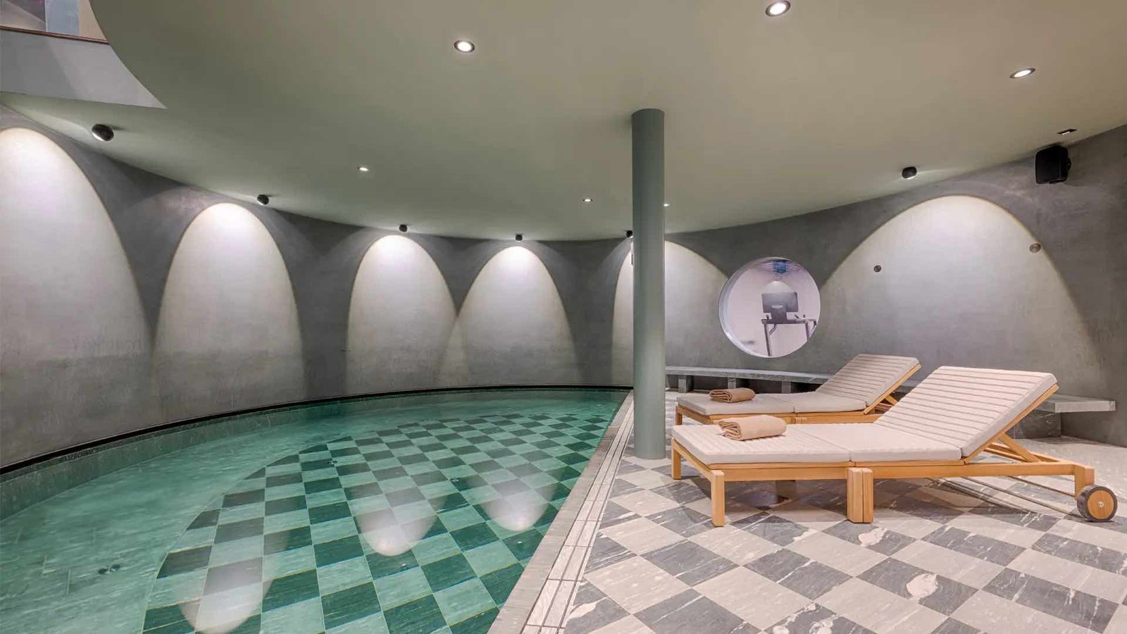 Guests also benefit from access to a shared wellness area complete with a swimming pool, sauna, steam room, outdoor jacuzzi, fitness space, and massage room, perfect for relaxing after skiing.