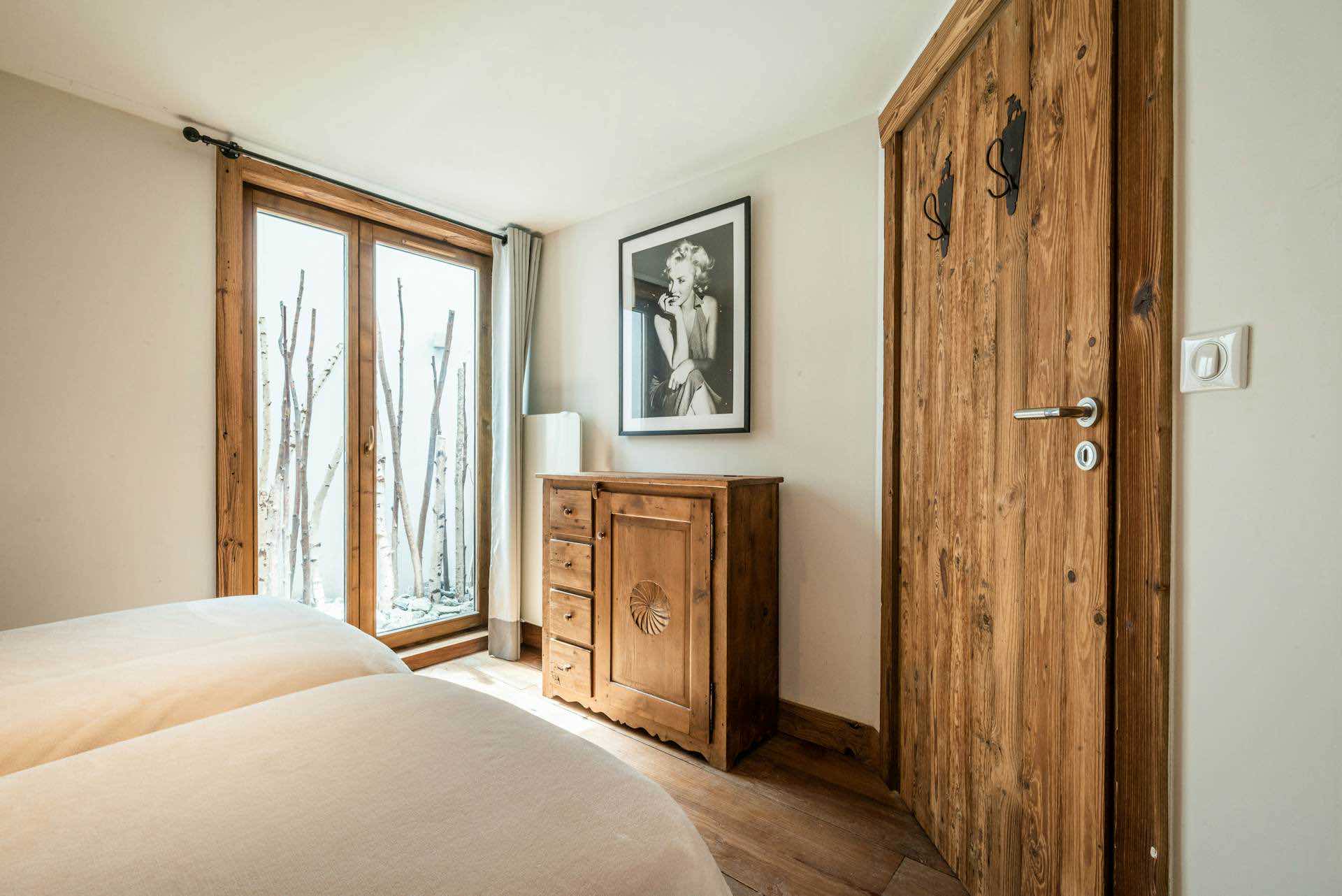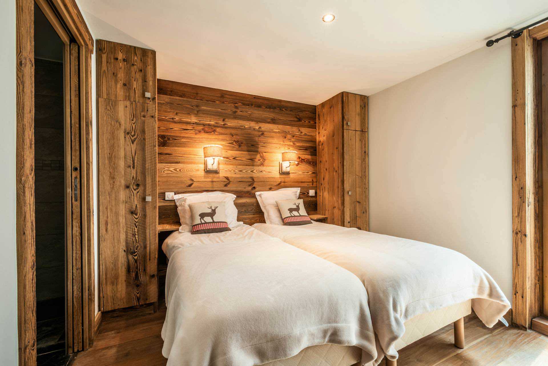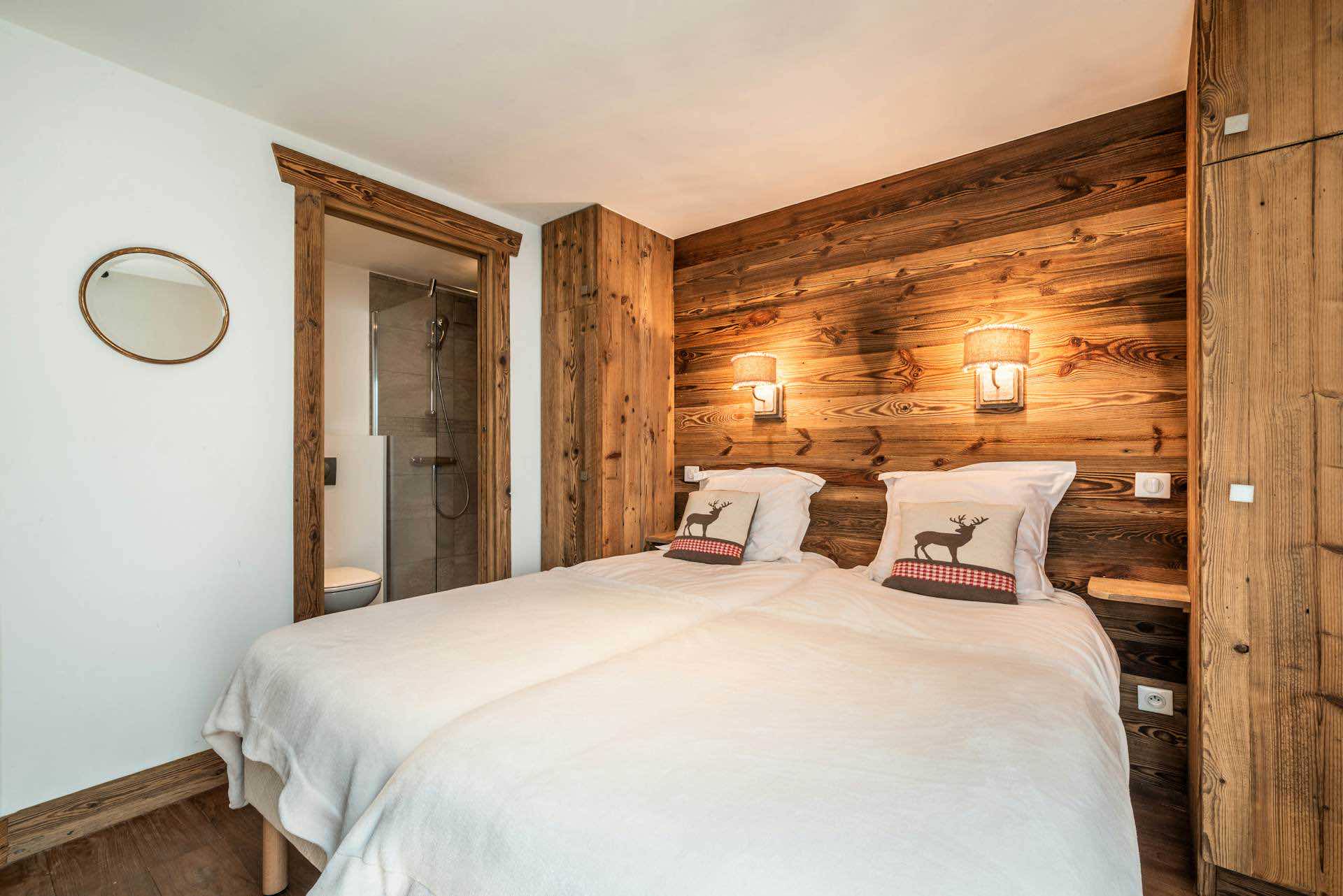 There are a few details worth noting. The two bedrooms on the lower level, located at floor -1, receive natural light only through skylights and do not have exterior windows. While there is no front desk on-site, each property is equipped with a secure digicode system. Your personal access code will be sent via email and text message one day before arrival, and a dedicated local team will remain available should you require any assistance. Moabi sits directly by the slopes yet slightly apart from the center of Le Praz, which is approximately a ten-minute walk away. The chalet also offers two parking spaces located at the entrance of the garage, though maneuvering in and out can be somewhat challenging and may require confident driving skills.