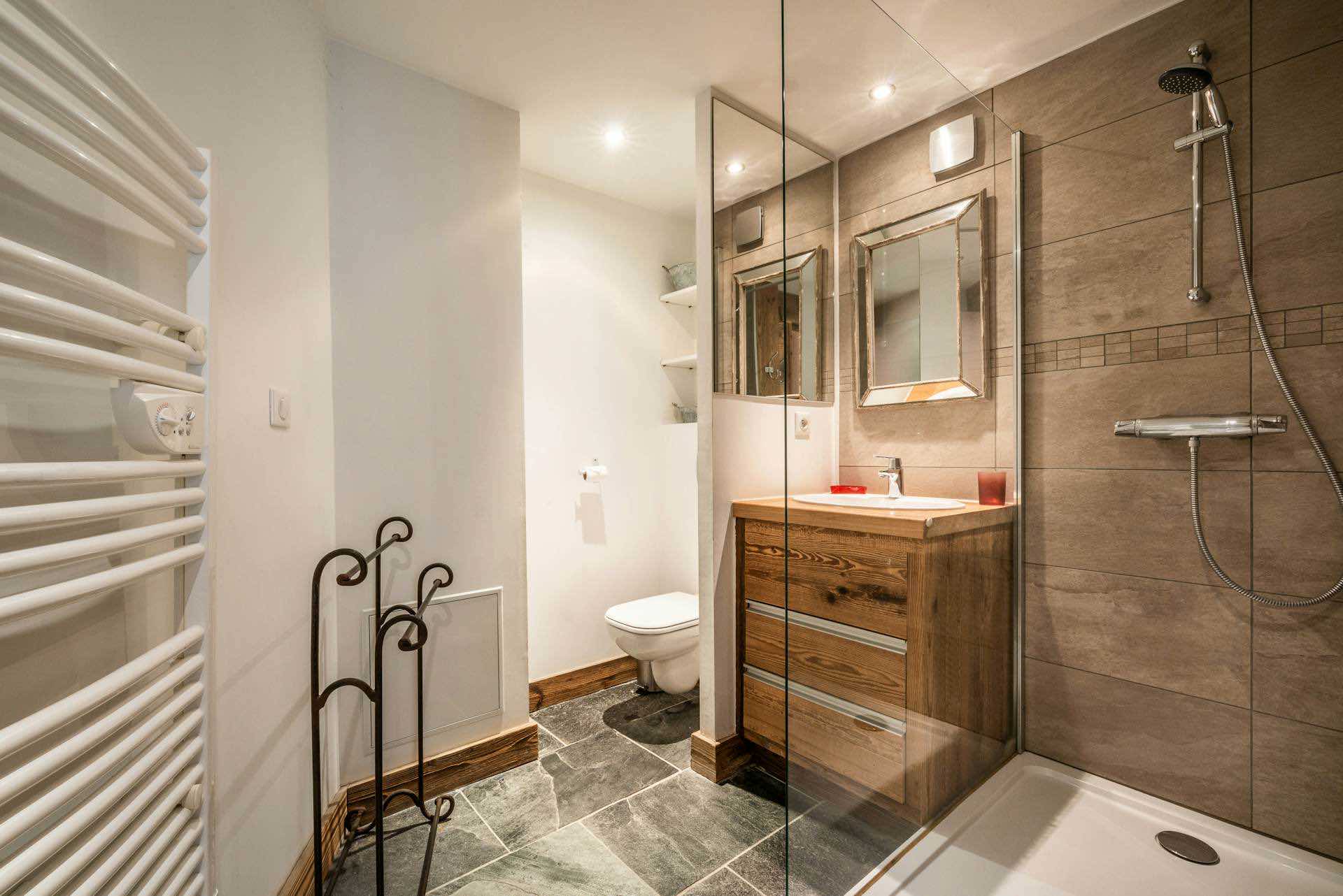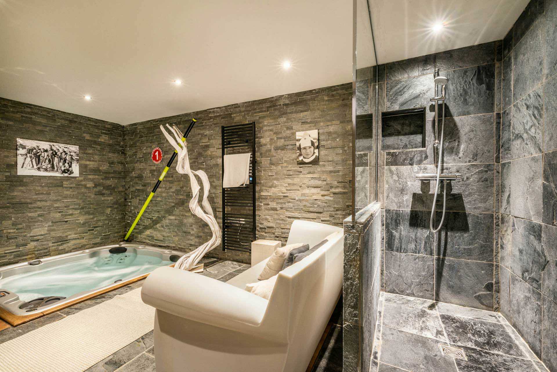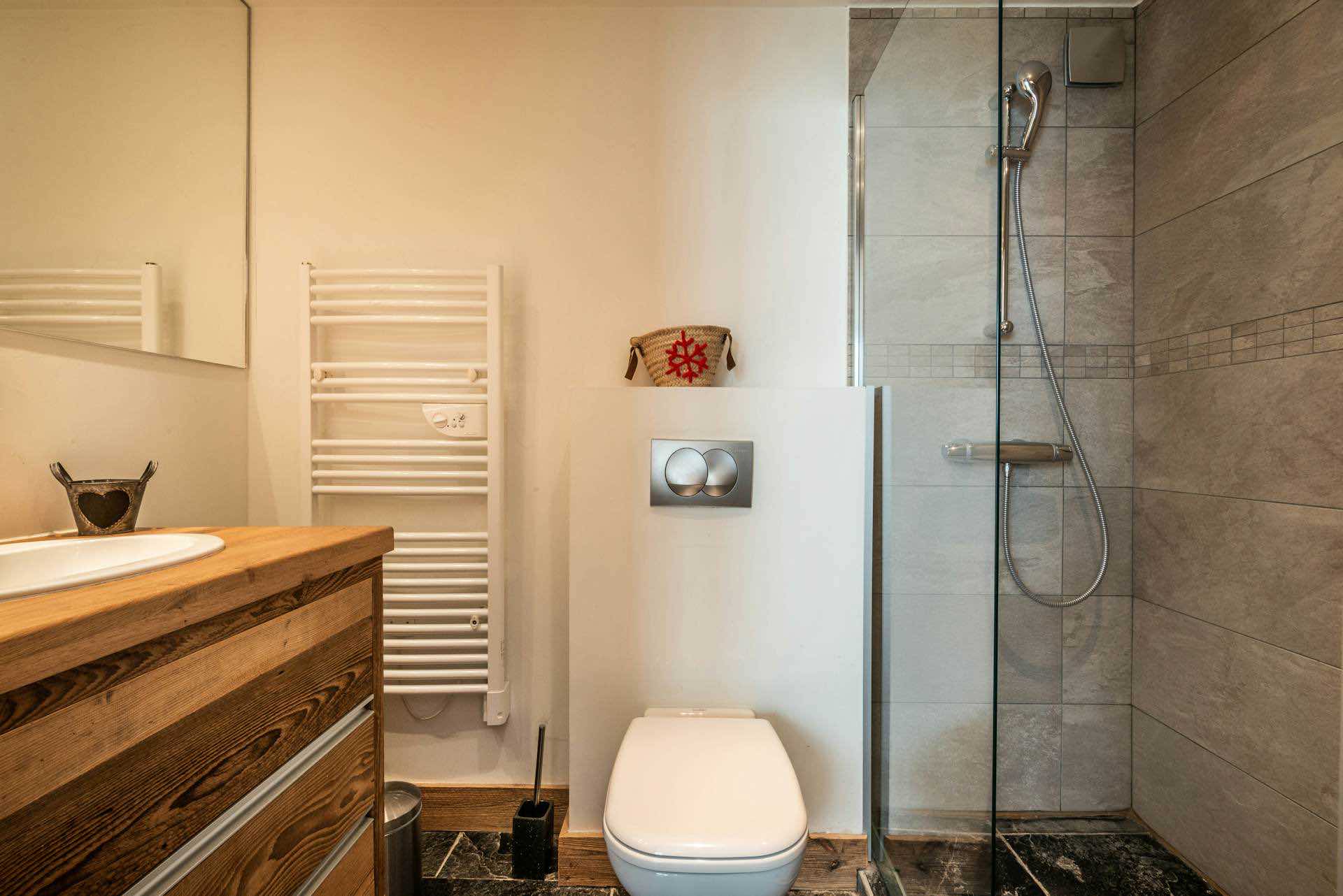 There are a few details worth noting. The two bedrooms on the lower level, located at floor -1, receive natural light only through skylights and do not have exterior windows. While there is no front desk on-site, each property is equipped with a secure digicode system. Your personal access code will be sent via email and text message one day before arrival, and a dedicated local team will remain available should you require any assistance. Moabi sits directly by the slopes yet slightly apart from the center of Le Praz, which is approximately a ten-minute walk away. The chalet also offers two parking spaces located at the entrance of the garage, though maneuvering in and out can be somewhat challenging and may require confident driving skills.