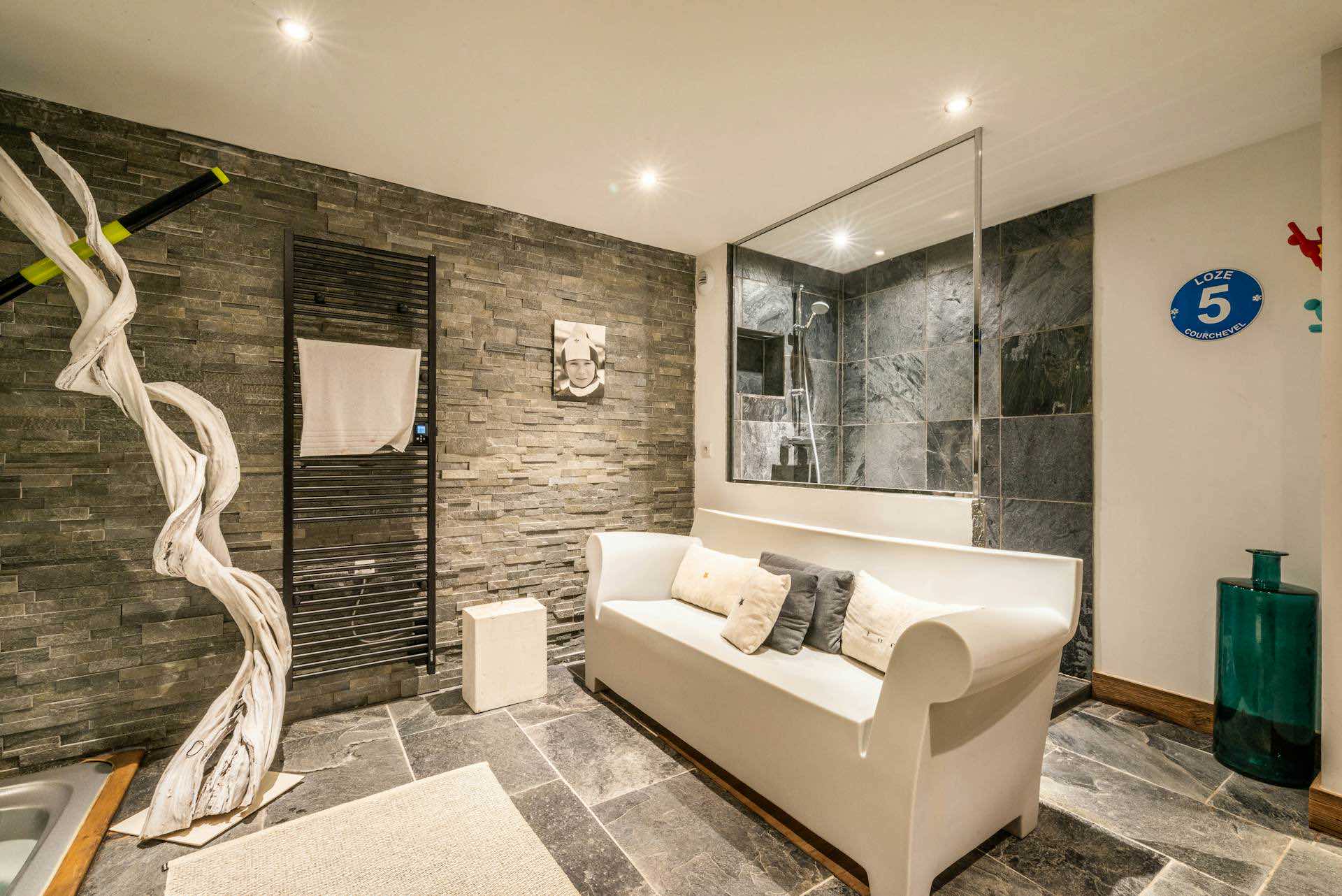 Thanks to its enviable location, Moabi enjoys sunlight throughout the day in every room and is just a ten-minute stroll from the center of Le Praz. Nestled at the base of Courchevel, Le Praz is a charming French Alpine village that has retained its traditional character and warm community spirit. With its authentic wooden chalets and relaxed atmosphere, it offers fair prices and an experience untouched by the glamour of its neighboring resorts.