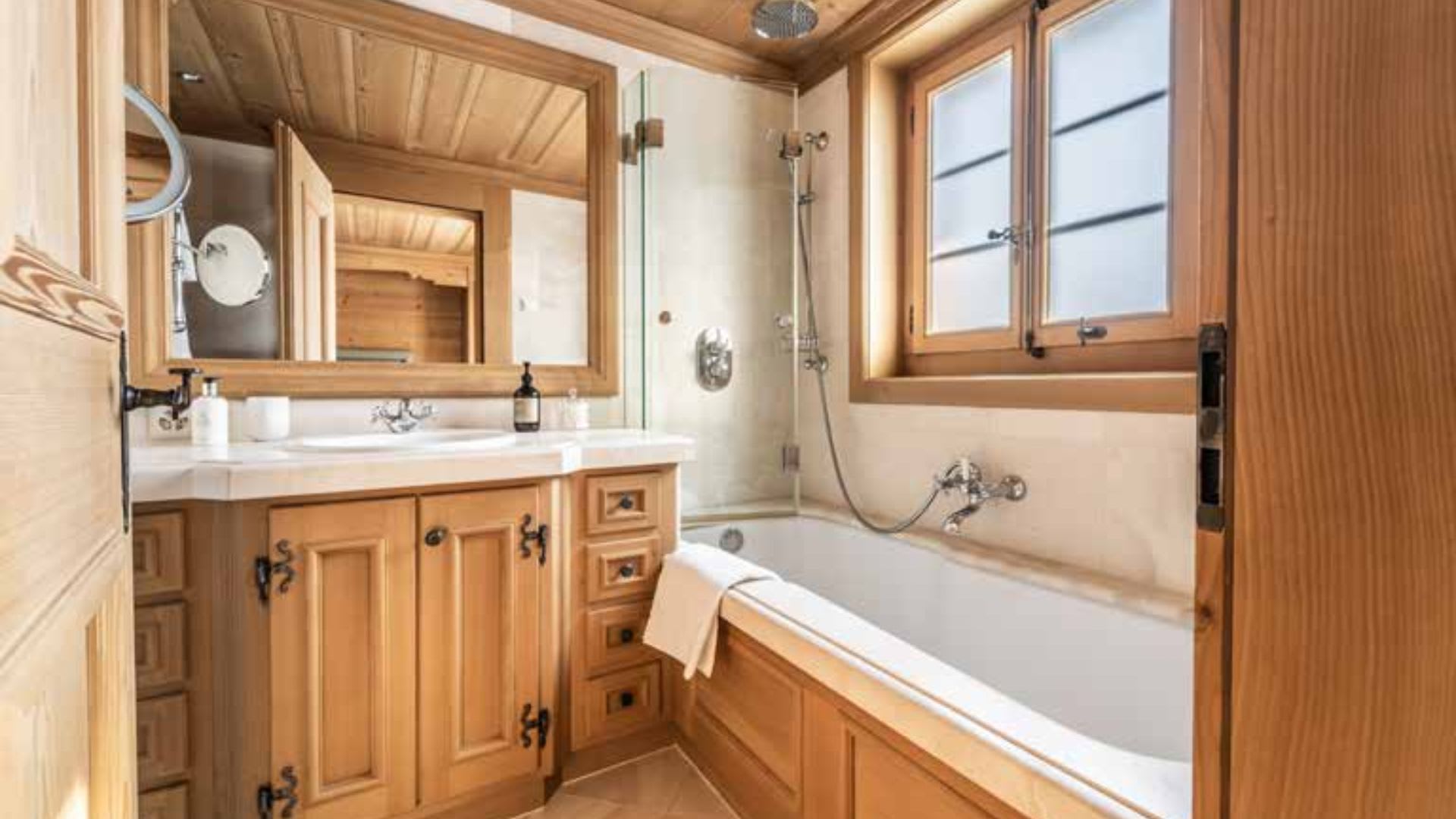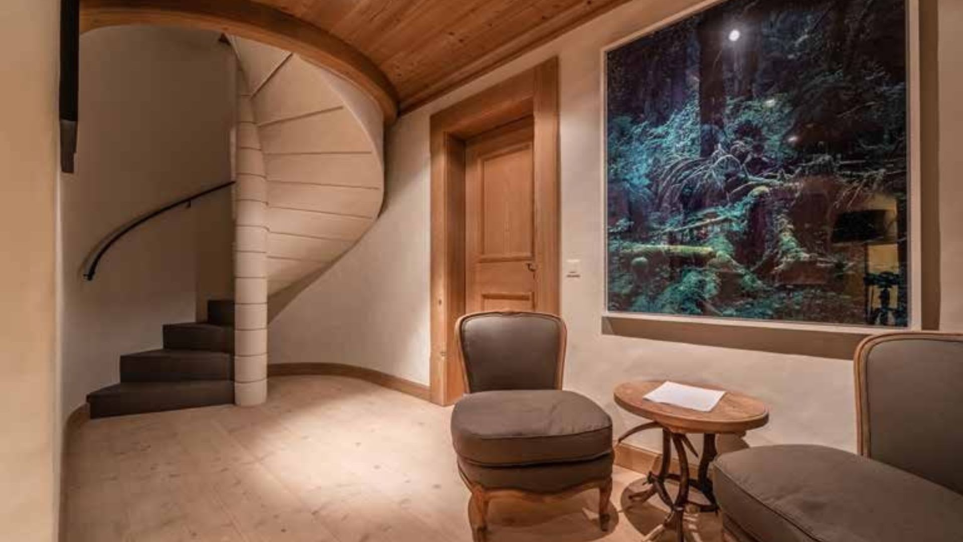This refined four-bedroom duplex in the sought-after Wispile area, just a short walk from the Park Hotel, offers an inviting retreat for up to eight guests. Its bright, uplifting atmosphere creates a comfortable setting for both relaxation and time spent together. The living areas combine contemporary style with a warm, welcoming feel, enhanced by a cozy fireplace and modern entertainment features. A fully equipped kitchen makes preparing meals enjoyable, and an elevator provides easy access to every level.