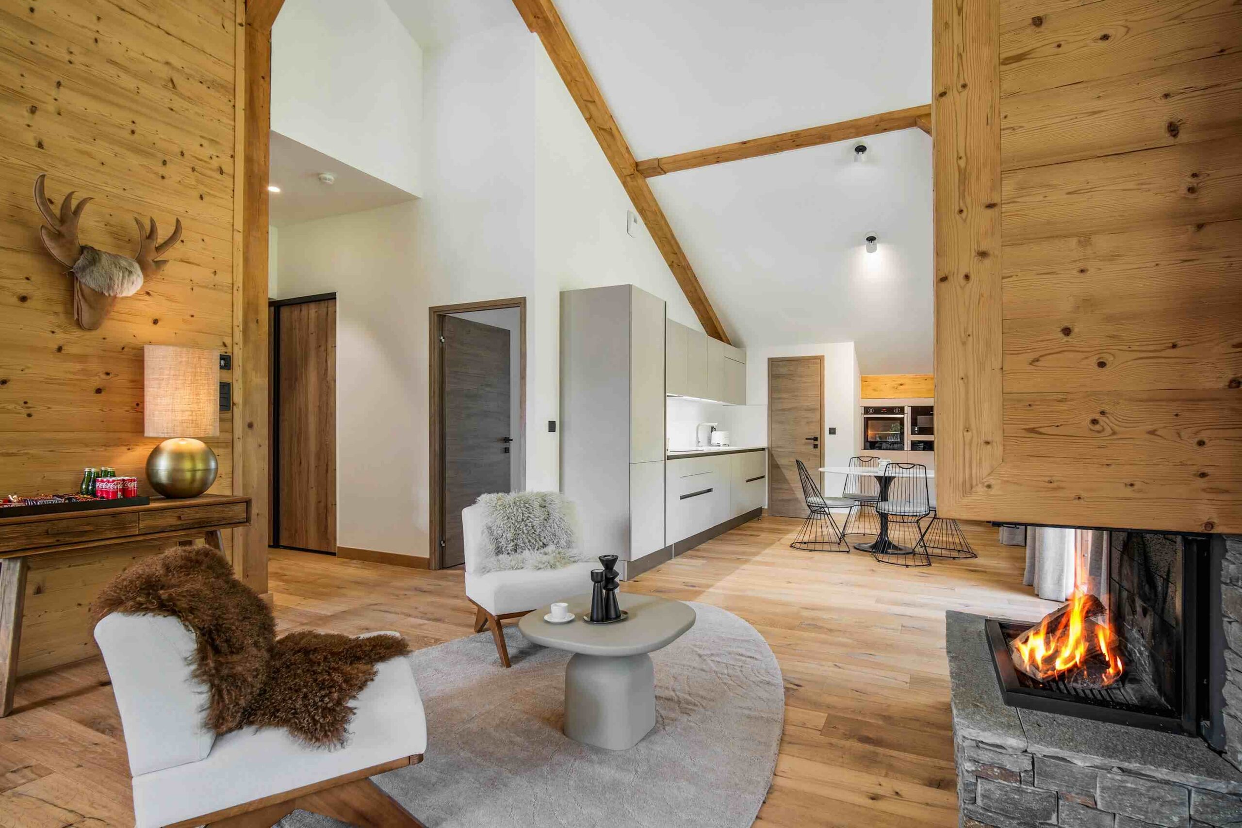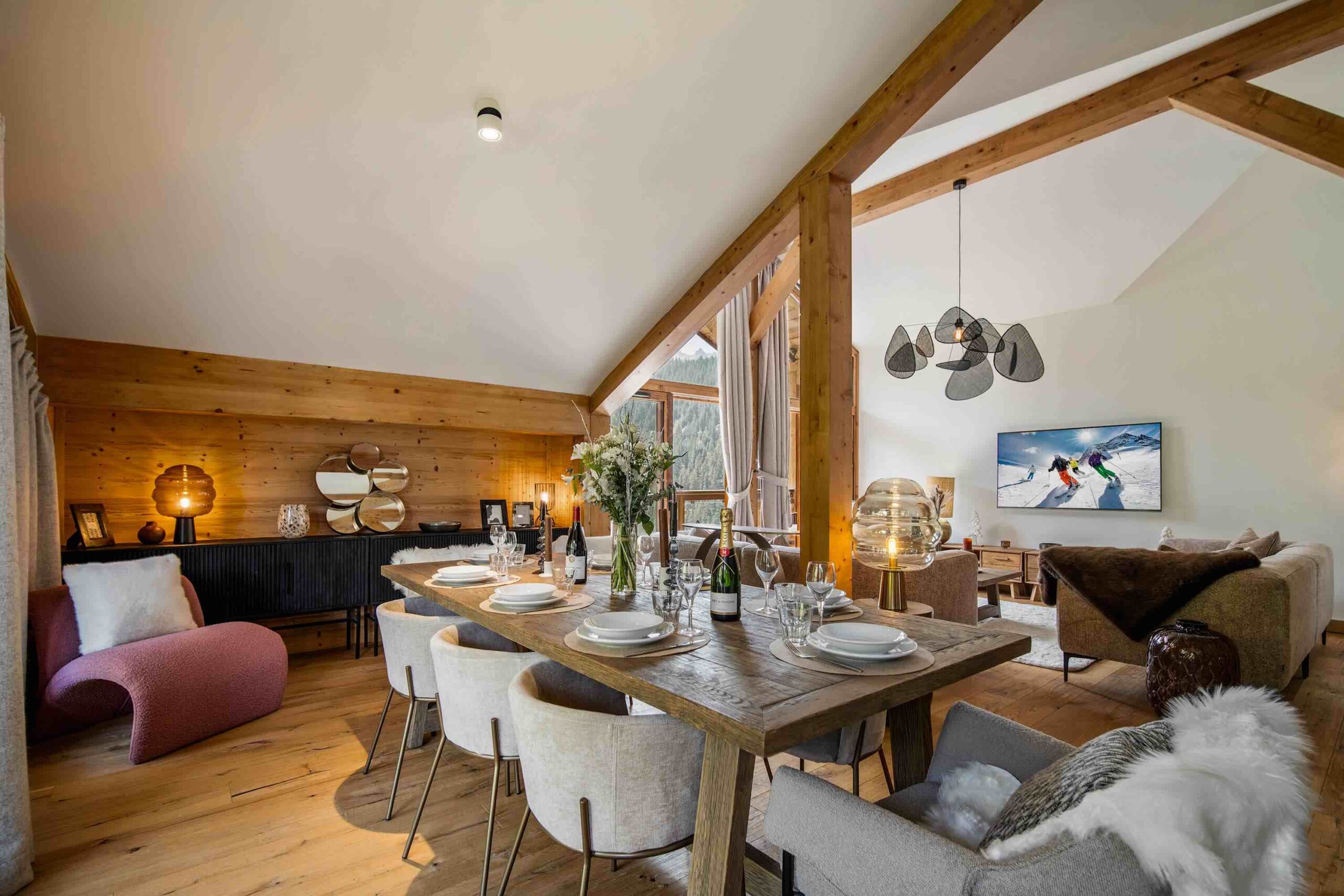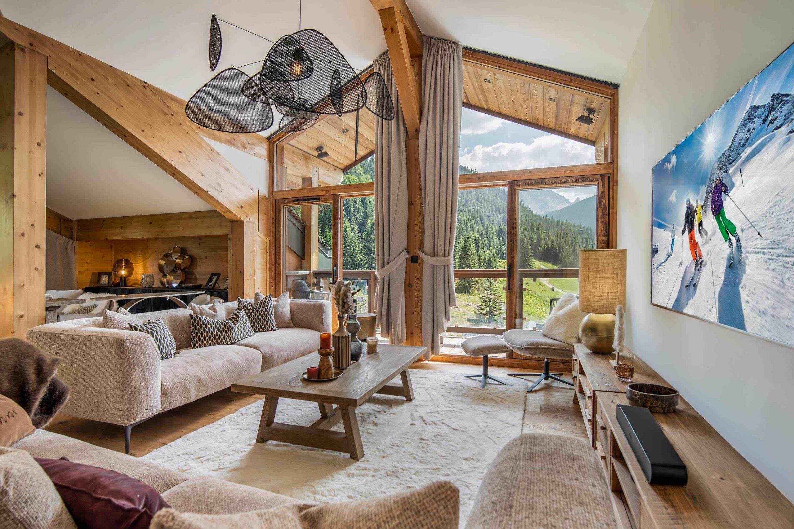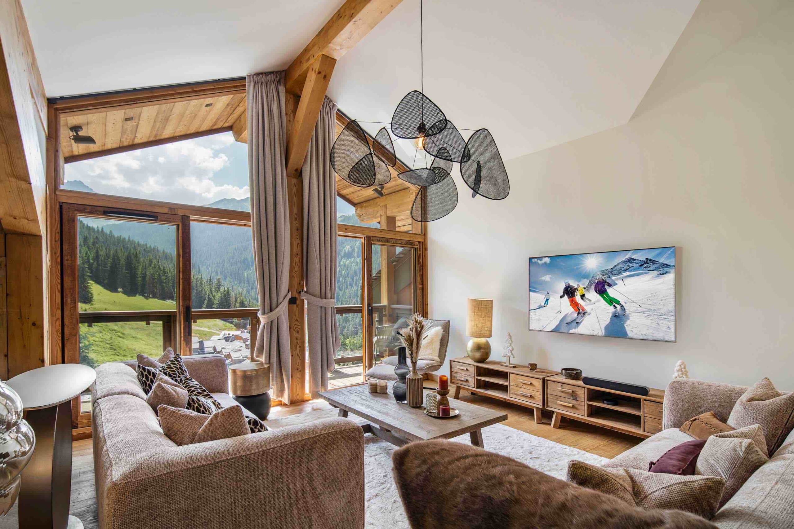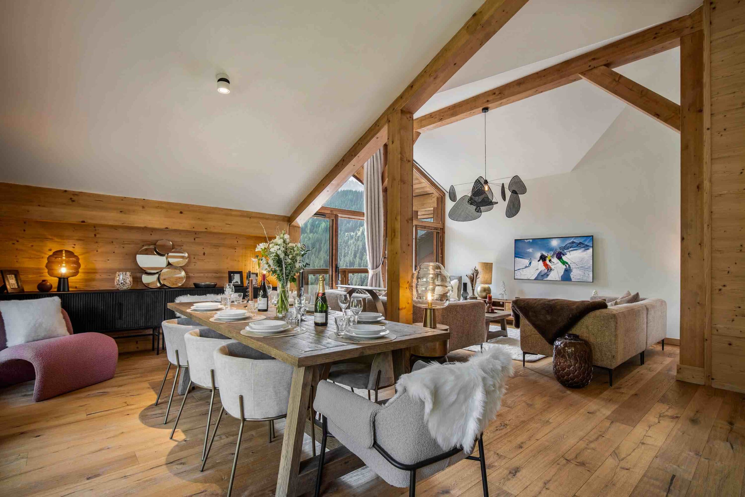 Additional amenities include a private parking space, secured indoor garage, ski locker, premium bedding, fresh towels, and high-speed Wi-Fi. Located in the sought-after Résidence de l’Ariondaz, the penthouse is just steps from the Ariondaz ski lift and close to ski shops, restaurants, bakeries, and spas.