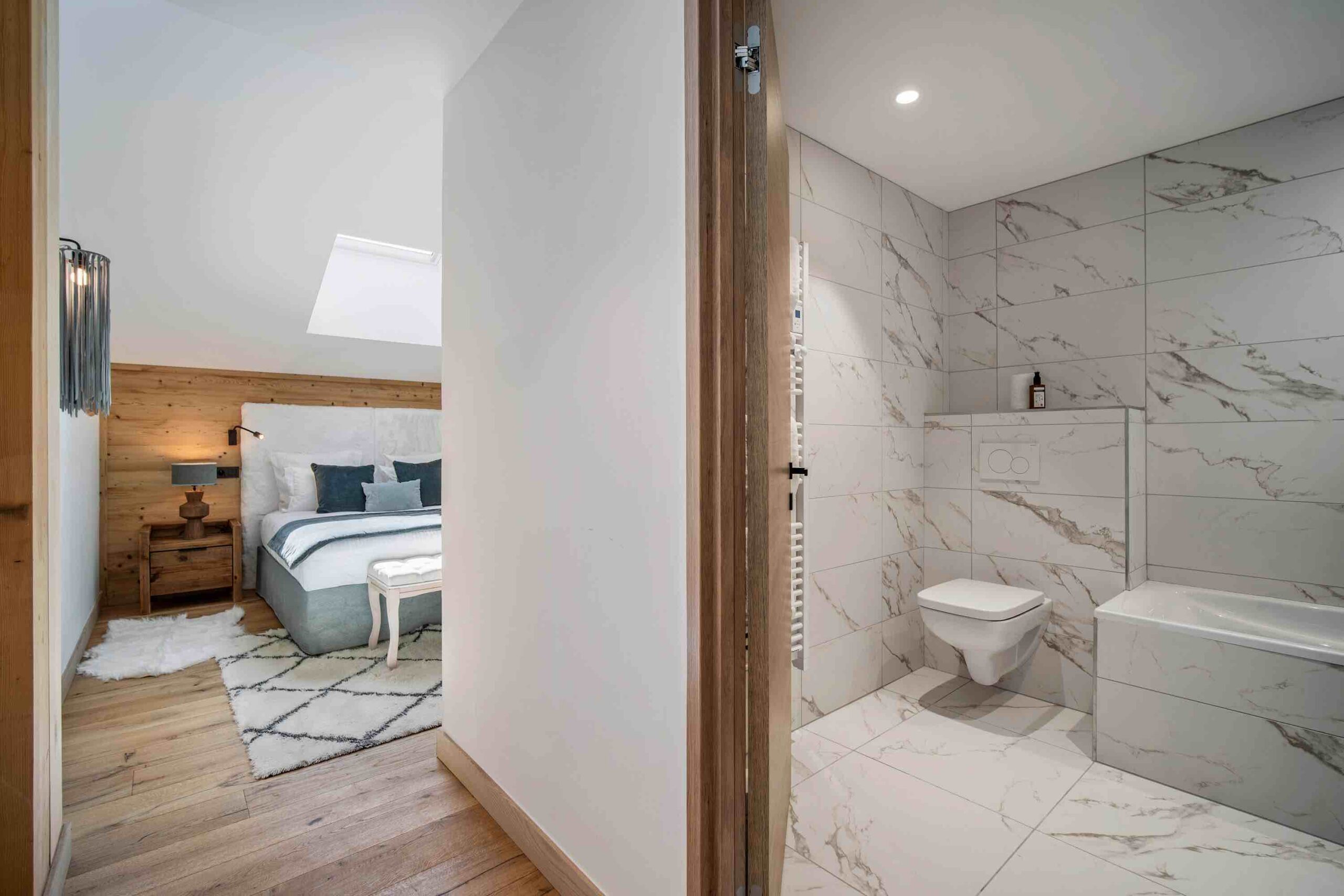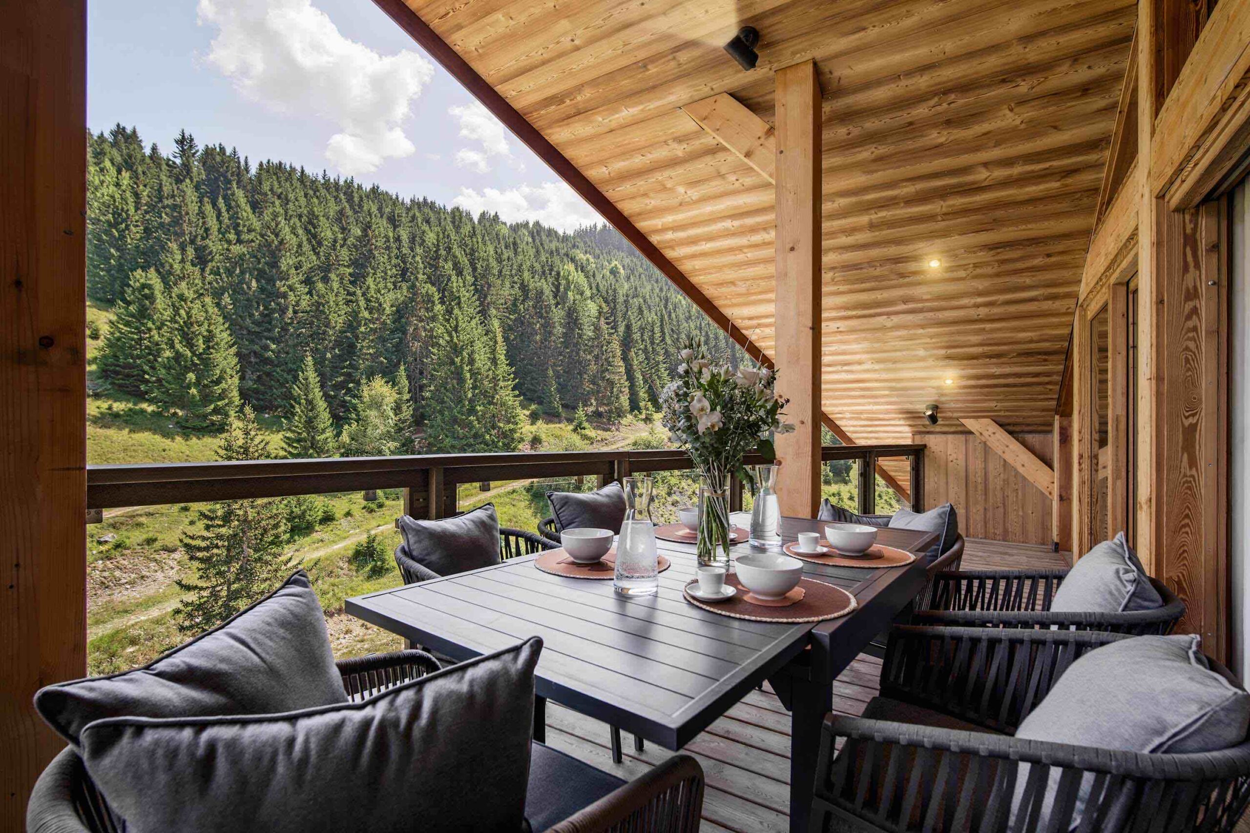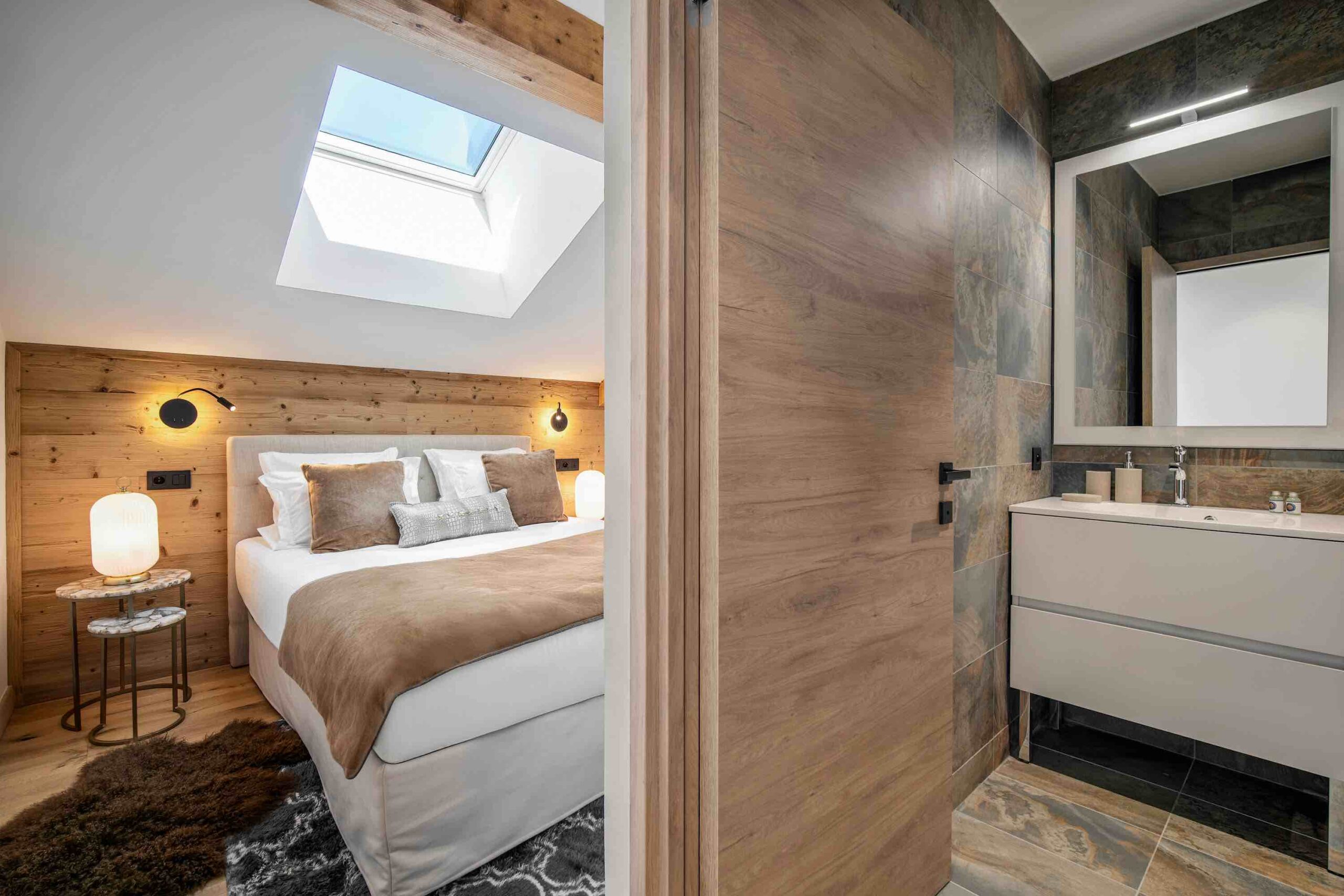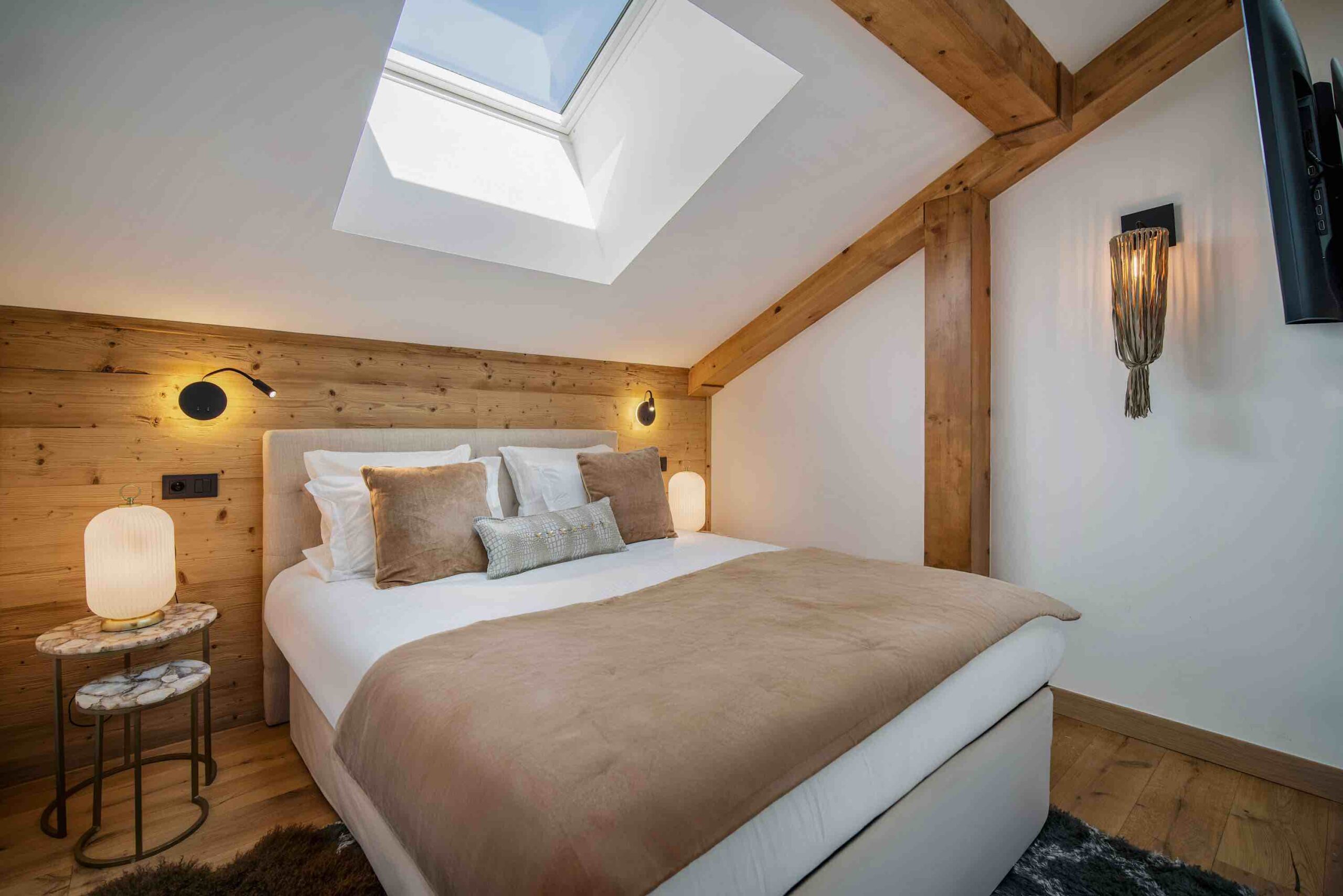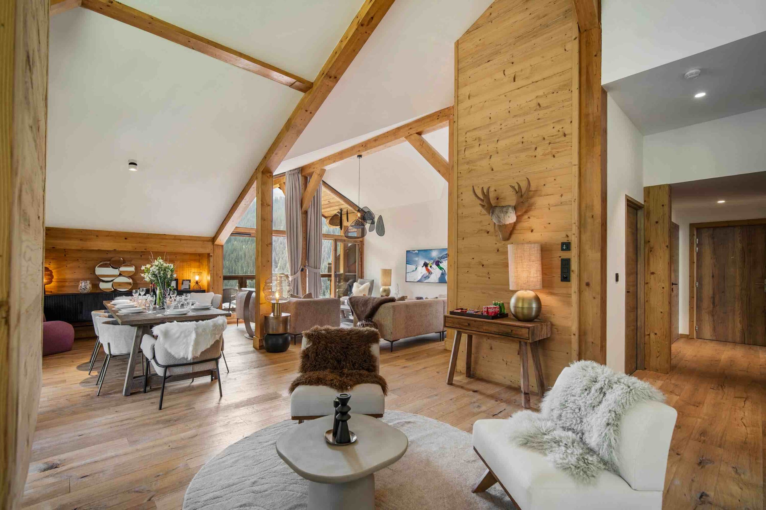 Additional amenities include a private parking space, secured indoor garage, ski locker, premium bedding, fresh towels, and high-speed Wi-Fi. Located in the sought-after Résidence de l’Ariondaz, the penthouse is just steps from the Ariondaz ski lift and close to ski shops, restaurants, bakeries, and spas.
