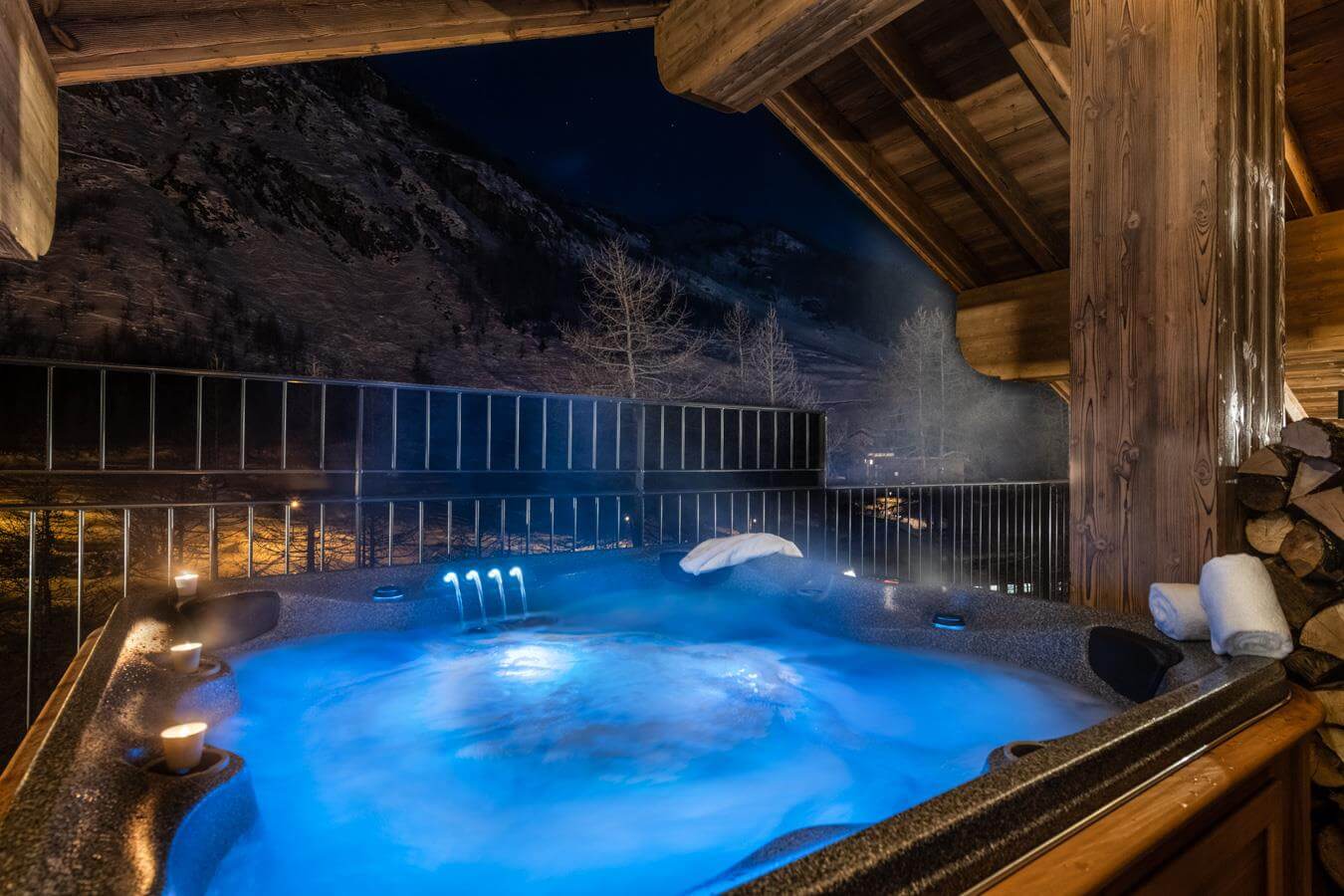 A highlight of the property, the outdoor hot tub, offers the ultimate après-ski indulgence. Overlooking majestic mountain panoramas and sheltered by the overhanging roof, it’s the perfect place to soothe tired muscles or simply relax with a drink in hand. For those who prefer to stay dry, the spacious balcony is equally inviting for après-ski moments in the crisp mountain air.