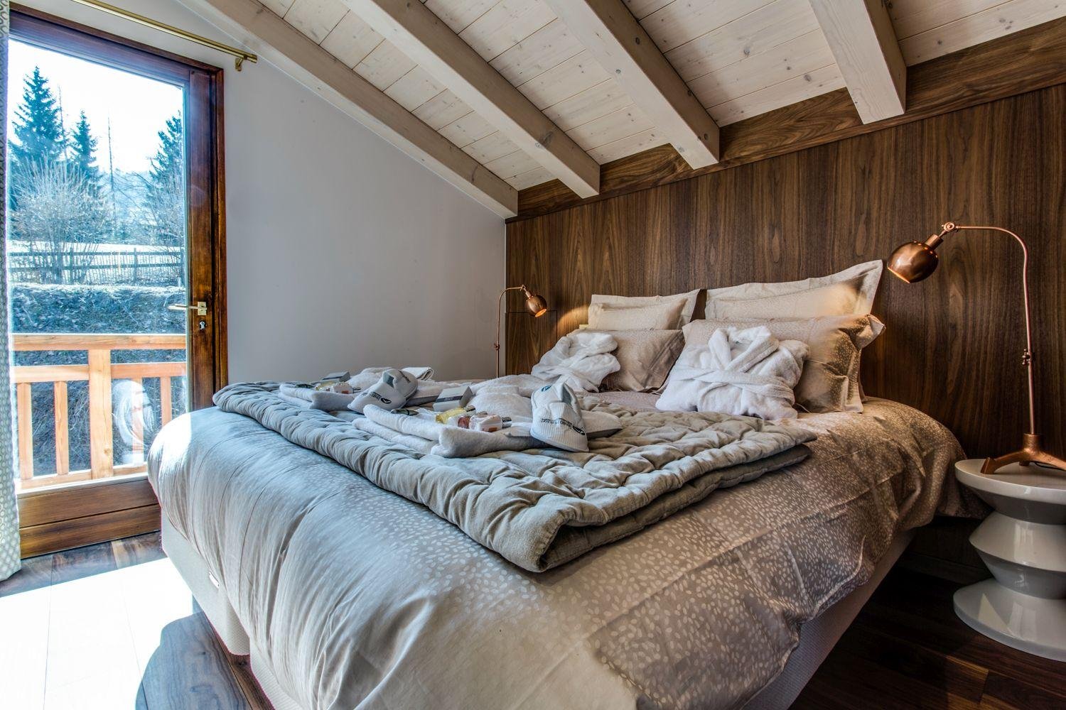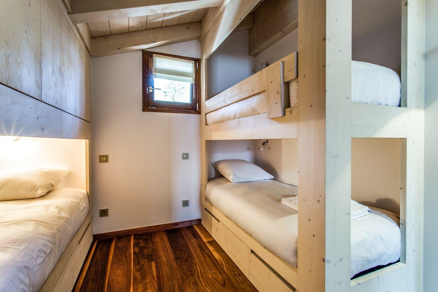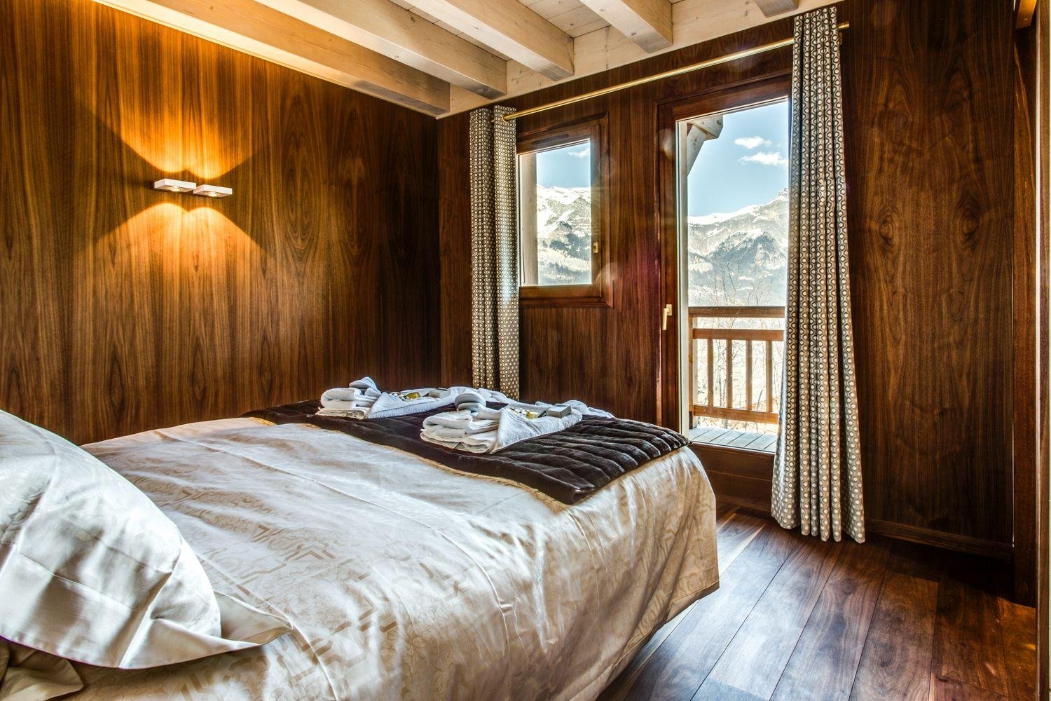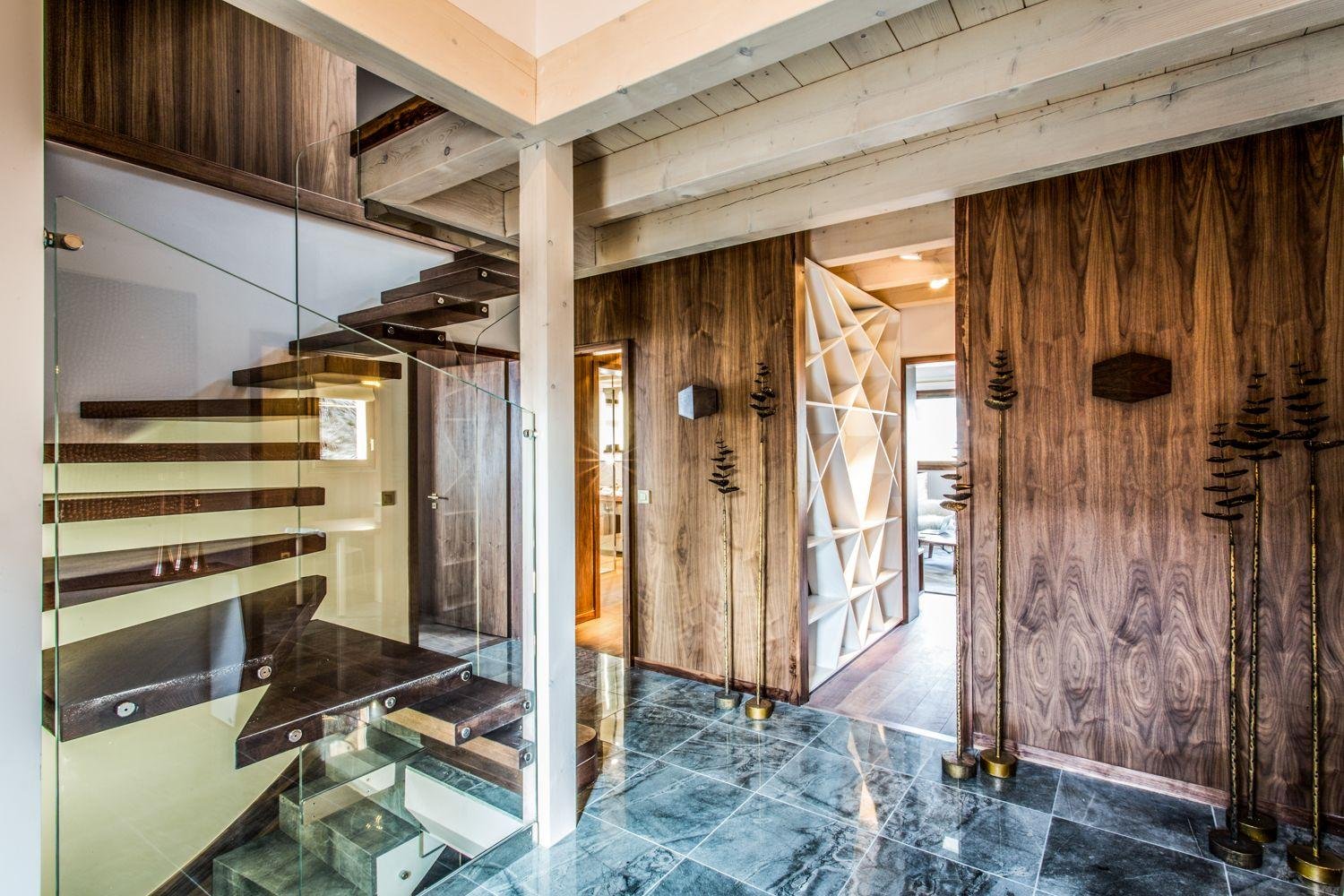 Set over three floors, the chalet features a bright open-plan living space with large windows framing breathtaking mountain views. After a day on the slopes, unwind on plush sofas beside the log-burning fireplace or gather around the dining table for relaxed evenings with friends and family.