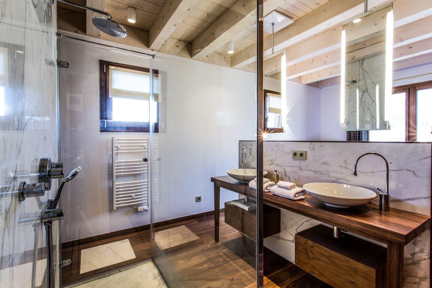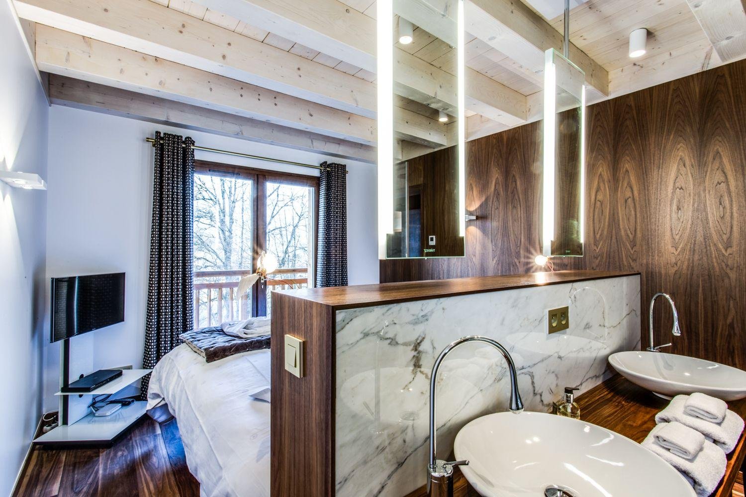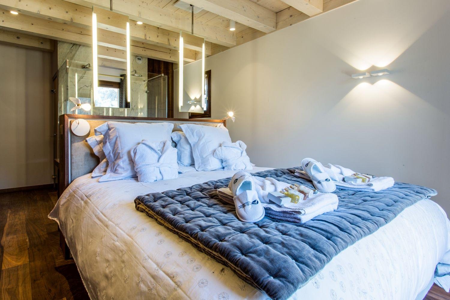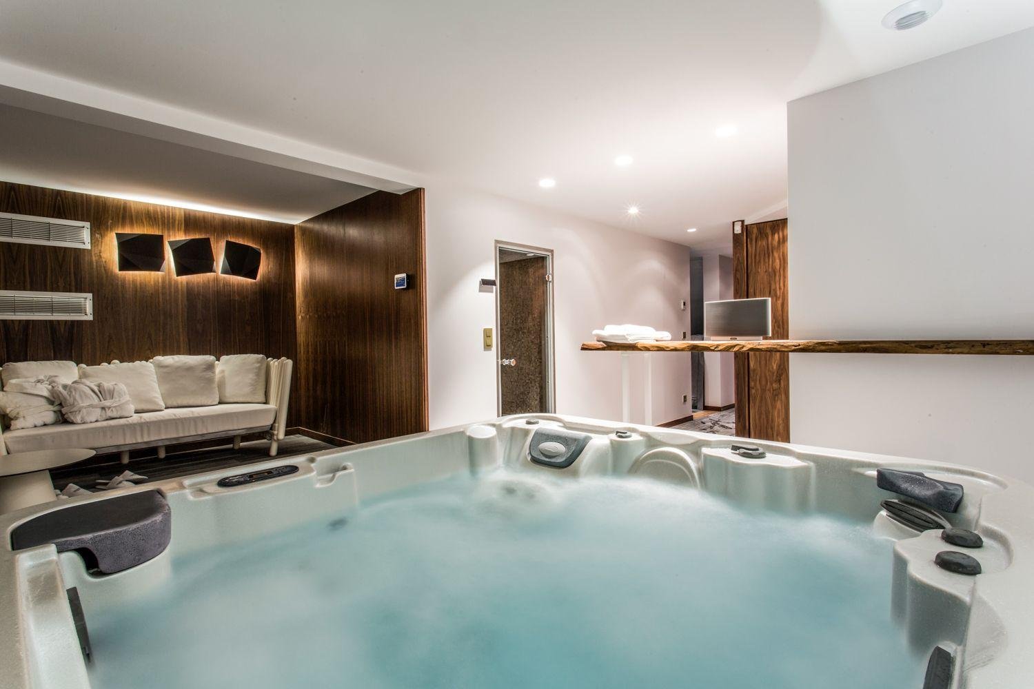 The highlight of the chalet is its private wellness spa, complete with an indoor jacuzzi overlooking the mountains, a hammam, rain shower, and dedicated relaxation area, perfect for soothing tired muscles after a day skiing.